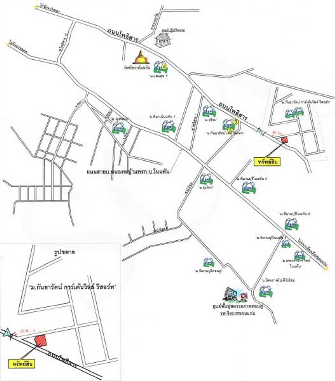 ที่ตั้งทรัพย์ : 79/13 หมู่บ้านกันยารัตน์ การ์เด้นวิวล์ รีสอร์ท ถนนโพธิสาร ตำบลในเมือง อำเภอเมืองขอนแก่น จังหวัดขอนแก่น