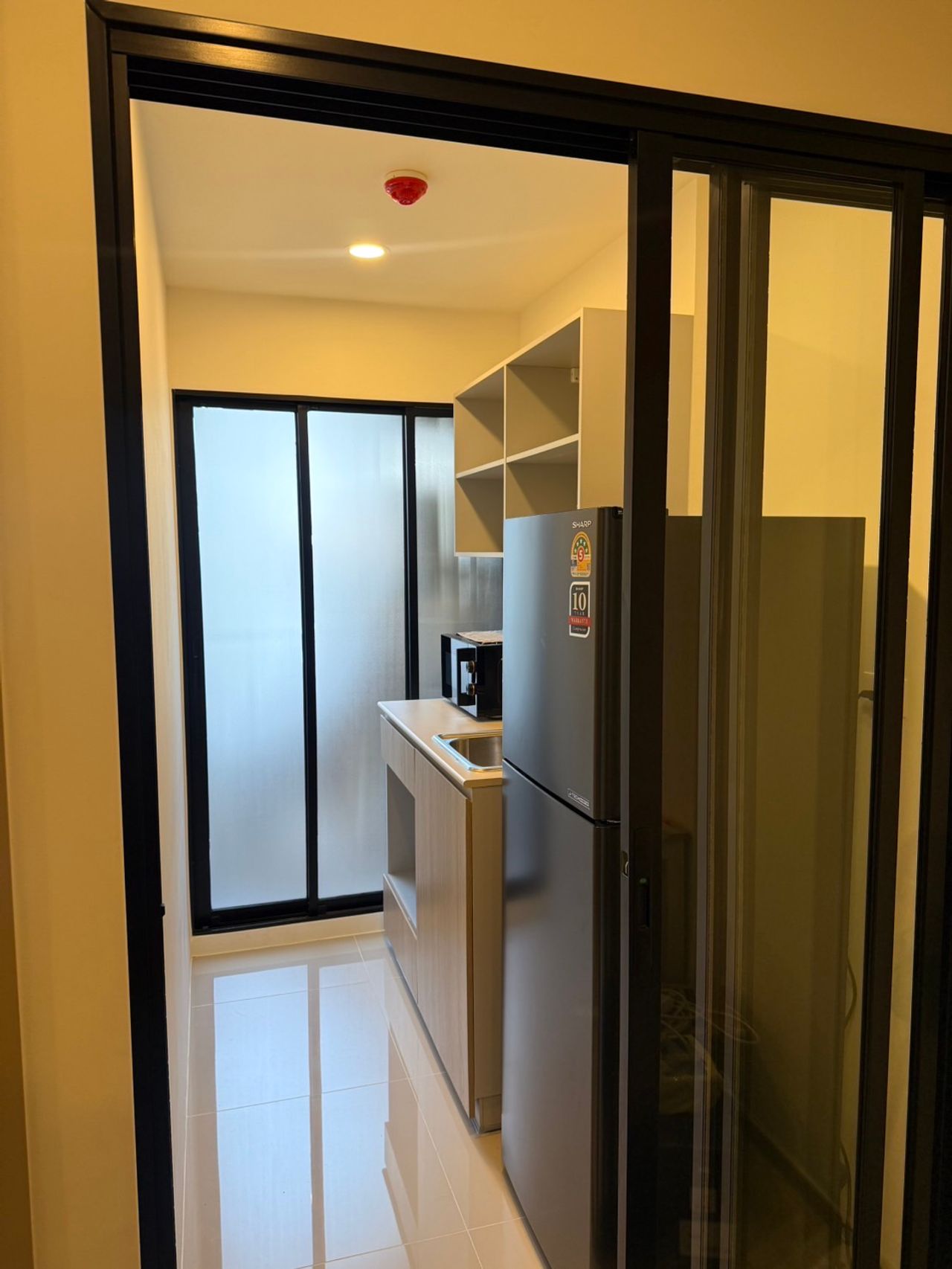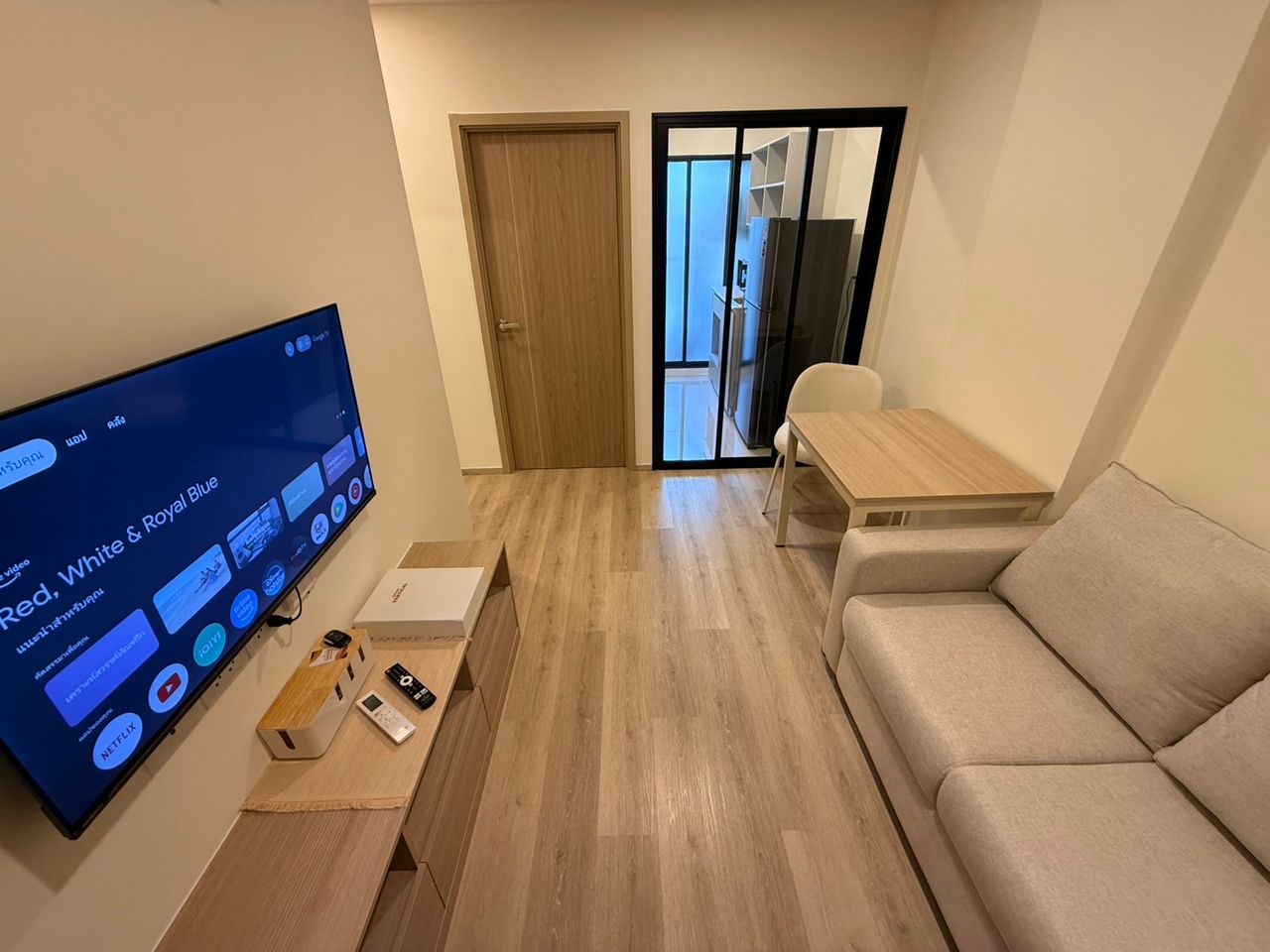 กั้นห้องทั้งหมด แยกห้องนอน ห้องนั่งเล่น ห้องครัว ห้องน้ำ ครัวอยู่ติดระเบียง สะดวกในการทำอาหารเองได้ดี
