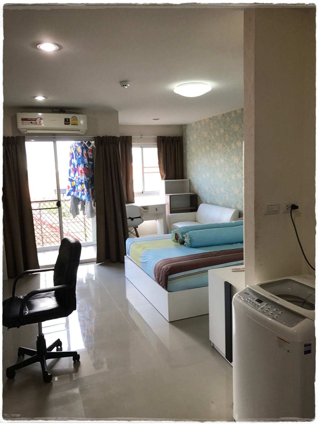 ▶️ห้องใหญ่ ขนาด 32 ตรม. ✅เฟอร์ครบ เตียงนอน, ตู้เสื้อผ้า, โต๊ะเครื่องแป้ง, ชั้นวางทีวี, ชุดโซฟา, เคาร์เตอร์ครัว, ซิ้งค์ล้างจาน เครื่องใช้ไฟฟ้า ตู้เย็น, ทีวี, แอร์ 12000 BTU, ทำน้ำอุ่น ,โต๊ะทำงาน ,เครื่องซักผ้า