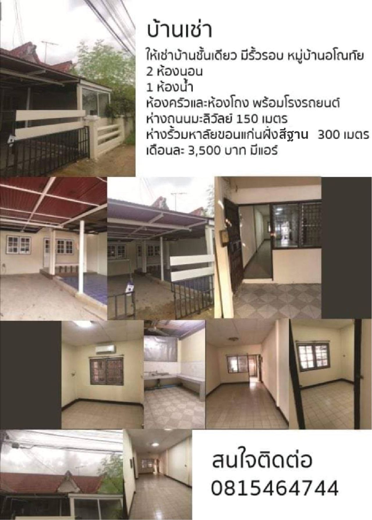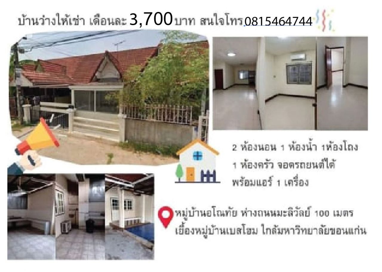 บ้านว่างให้เช่า บ้านชั้นเดียว