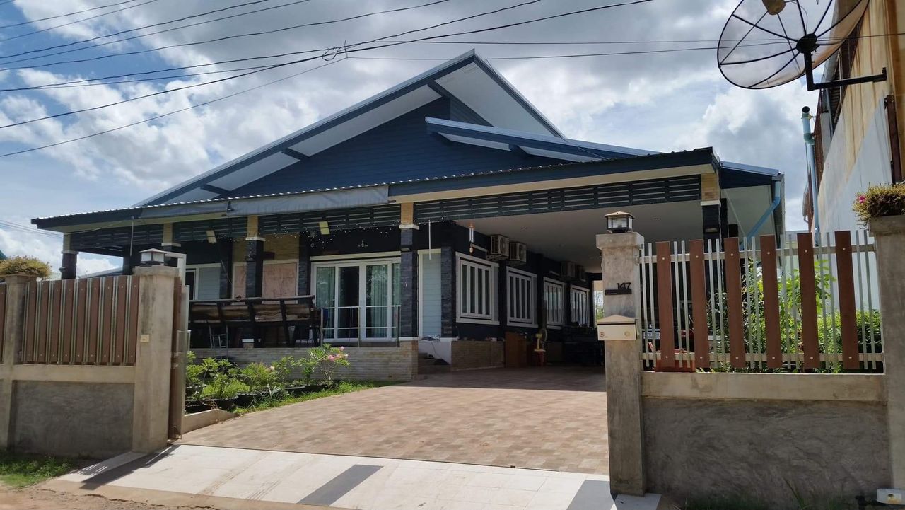 บ้านเดี่ยว 1 ชั้น สไตล์โมเดิร์น เงียบ สงบ ติดถนนหลัก ร้านขายของ ร้านอาหาร ตลาด ศูนย์อนามัย ปั๊มน้ำมัน เจ้าของบ้านสร้างอยู่เอง