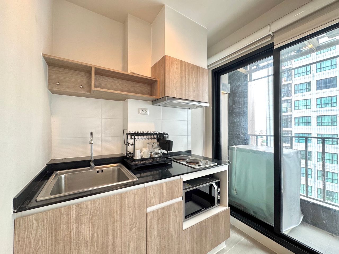 พื้นที่ใช้สอย : 1 ห้องนอน / 1 ห้องนั่งเล่น / 1 ห้องครัว / 1 ห้องน้ำ / 1 ระเบียง