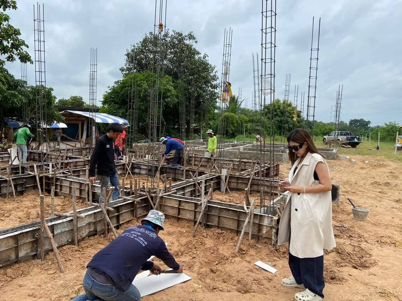 คัดสรรค์วัสดุคุณภาพ ใช้อิฐมวลเบาทำให้บ้านไม่ร้อนและโซนห้องน้ำเราก่อด้วยอิฐแดงเพื่อกันความชื้น
