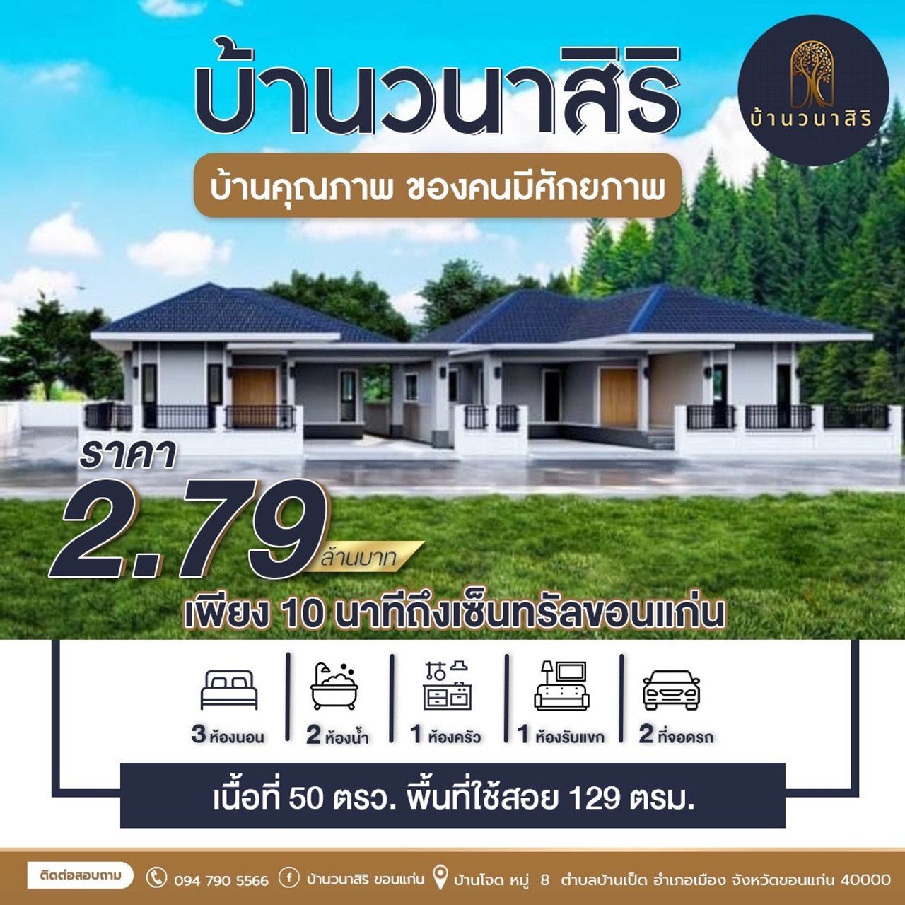 บ้านวราสิริ ขอนแก่น บ้านเดี่ยว เนื้อที่ 50 ตารางวา พื้นที่ใช้สอย 129 ตารางเมตร ราคา 2.79 ล้านบาท