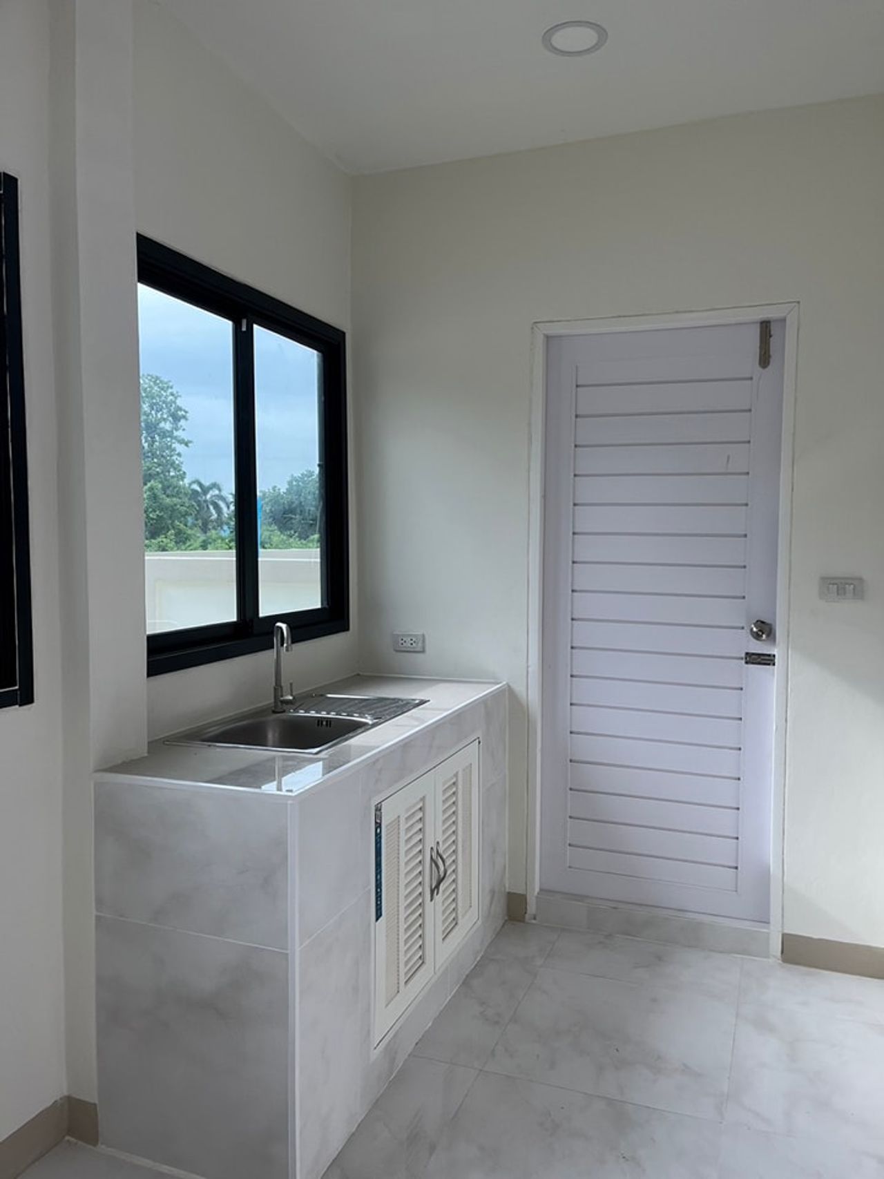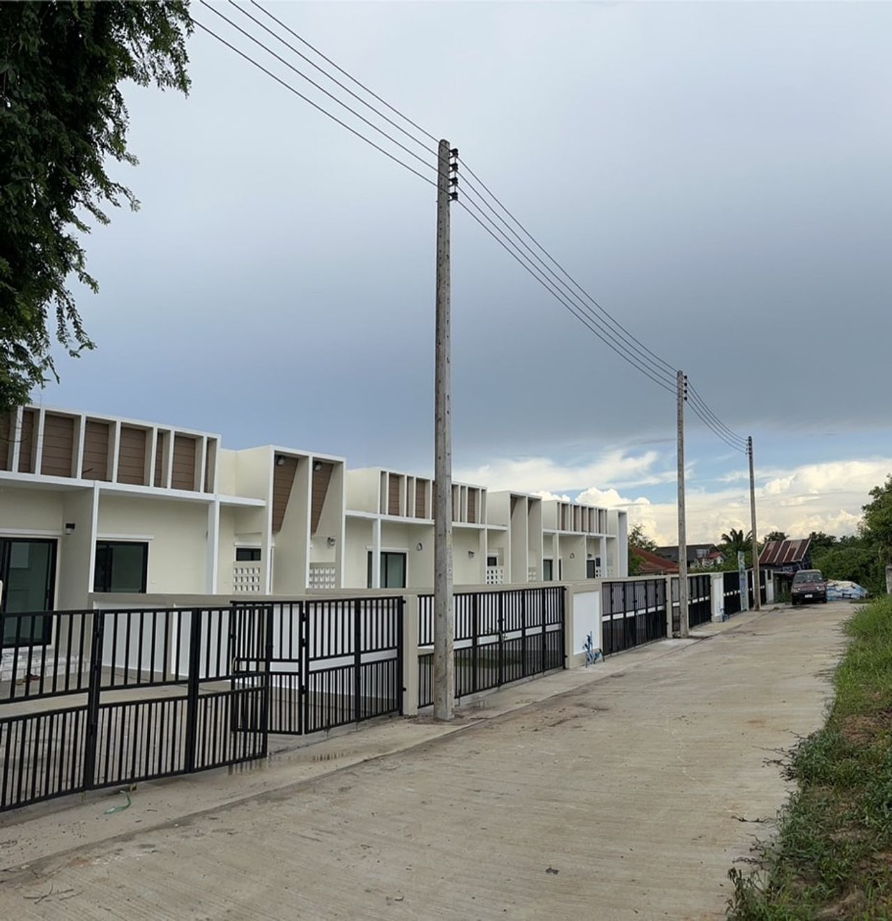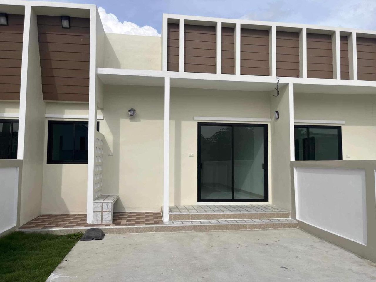 บ้านใหม่ เสร็จพร้อมเข้าอยู่ ลานข้างนอกกว้างขวาง ทำกิจกรรมได้ครบครัน ถนนในโครงการกว้าง 6 เมตร