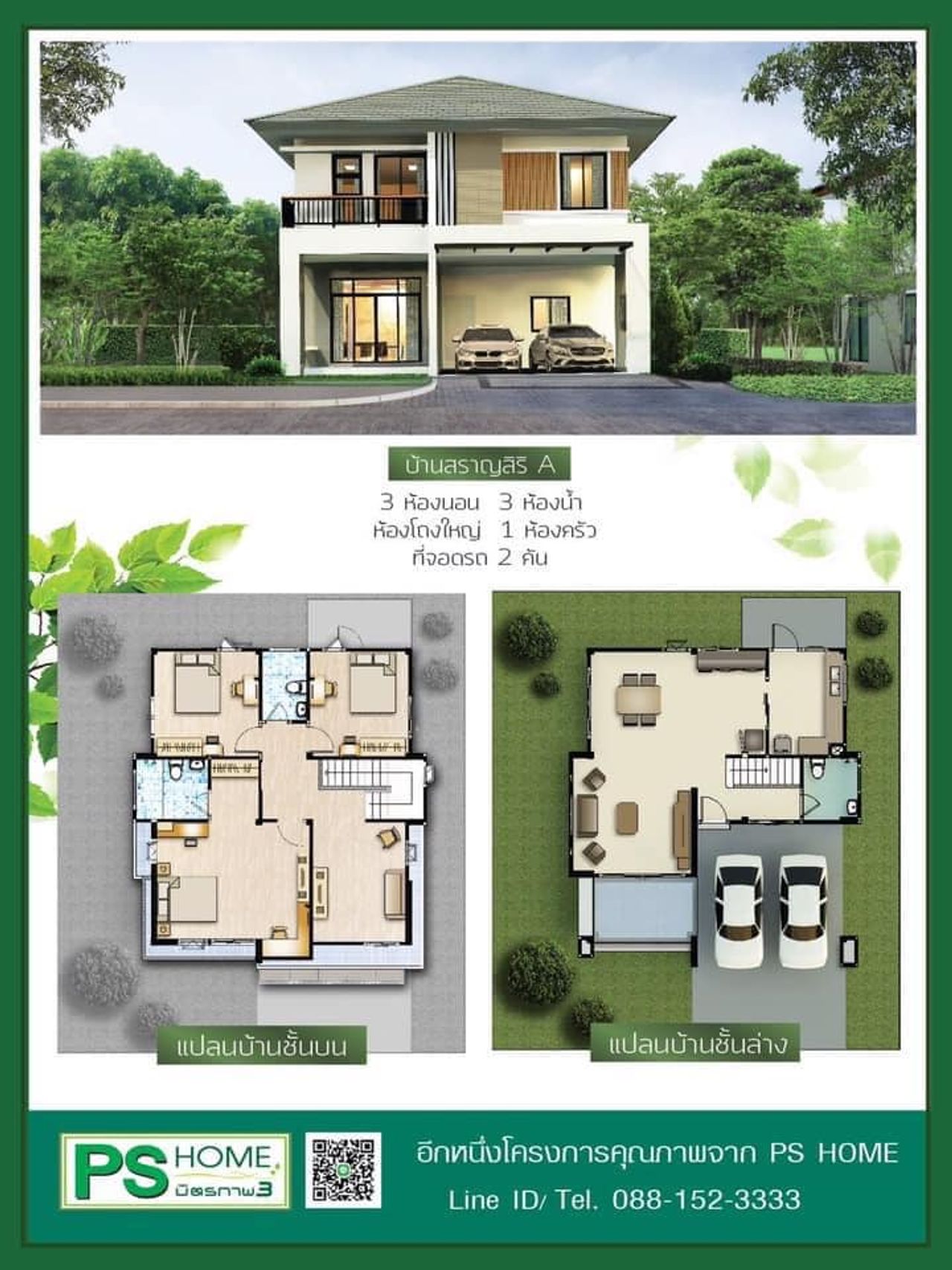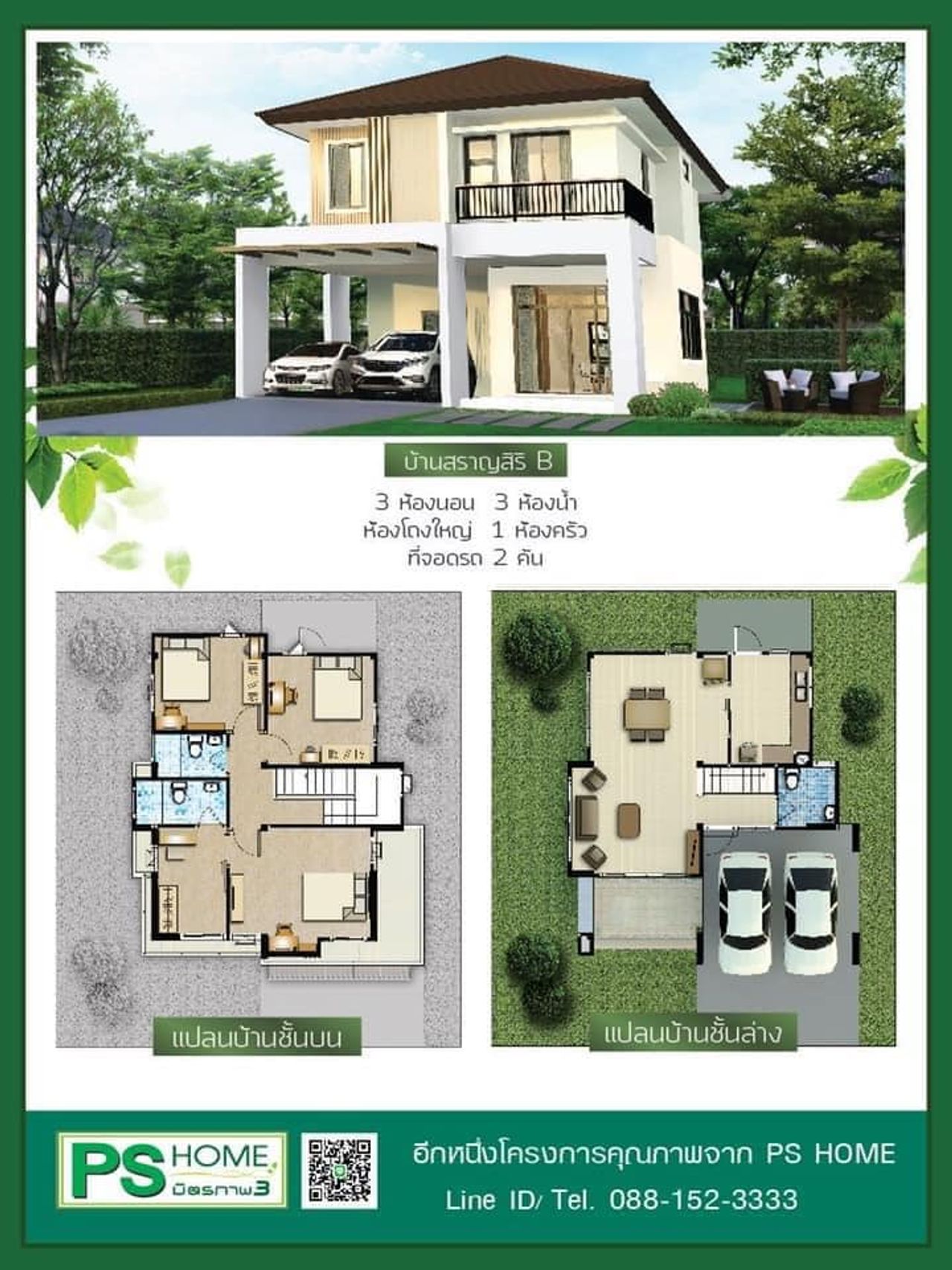 🏡 3 ห้องนอน | 3 ห้องน้ำ | จอดรถได้ 2 คัน