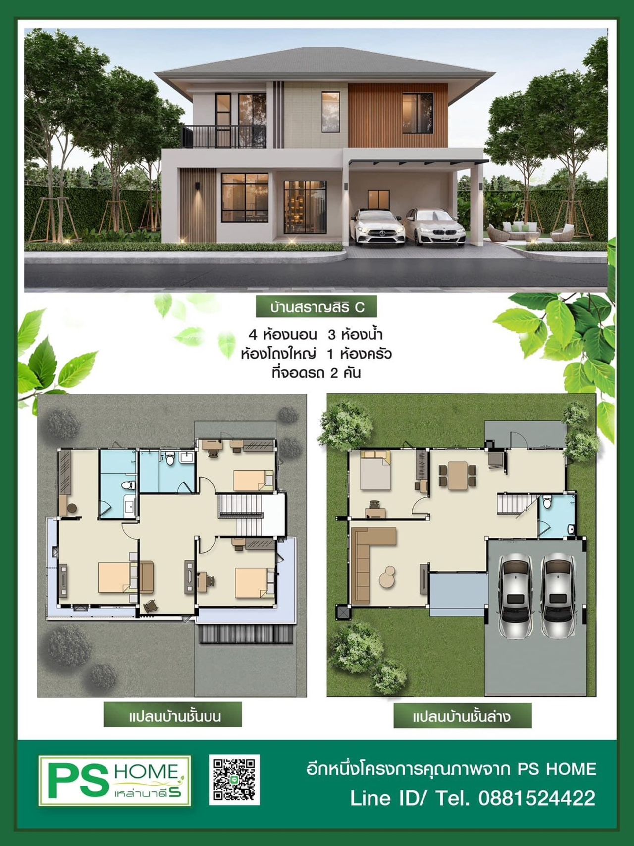 แบบสราญสิริ C พื้นที่ใช้สอย ประมาณ 192 ตร.ม.