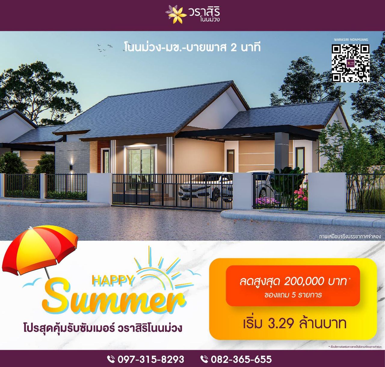• สำนักงานขายวราสิริ โนนม่วง เปิดทำการทุกวัน เวลา 09:00 - 17:00 น.