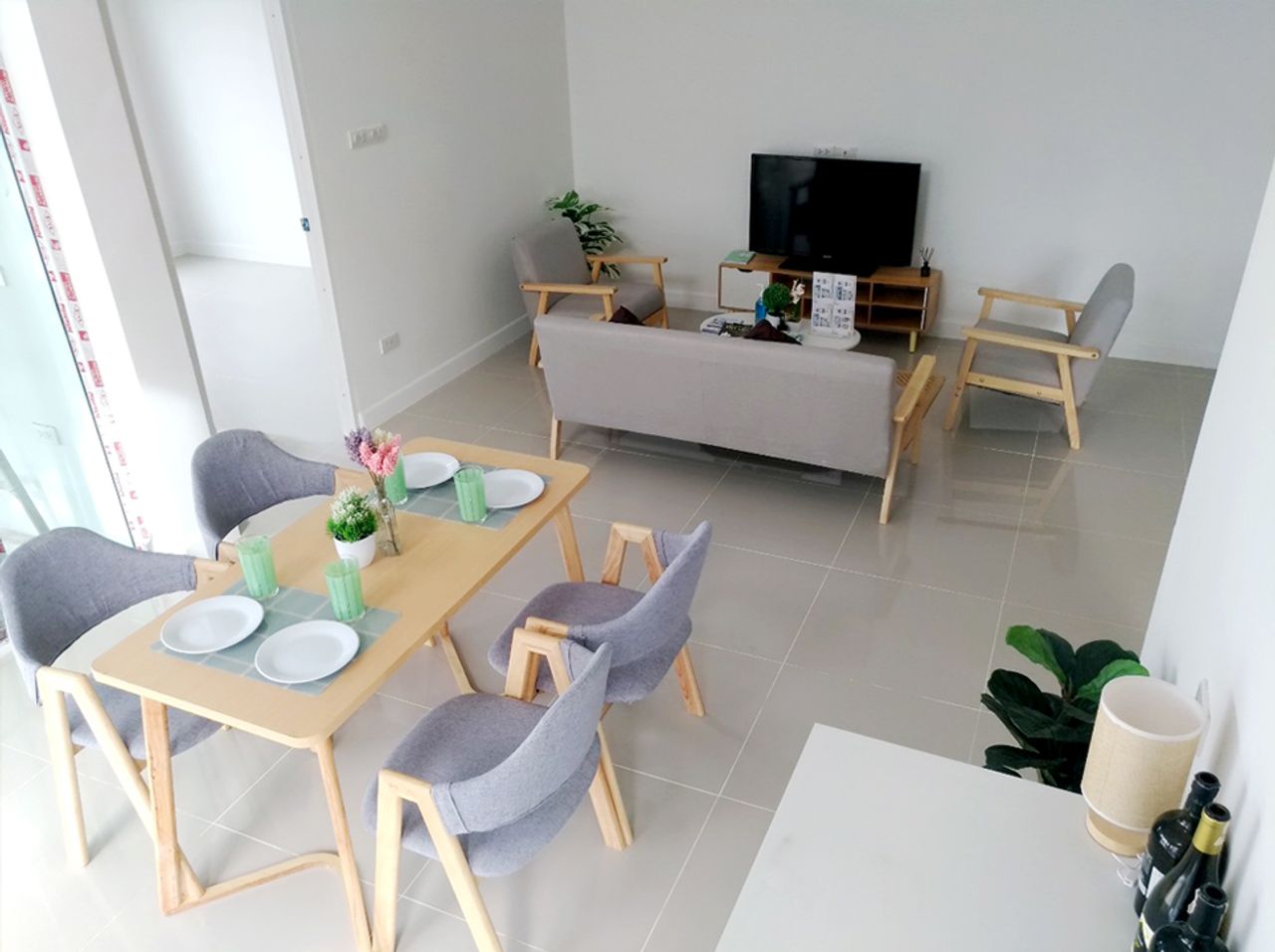 บ้านแฝดชั้นเดียว (แบบ T) 2 นอน 2 น้ำ 2 จอดรถ 36 ตรว. 90 ตรม.