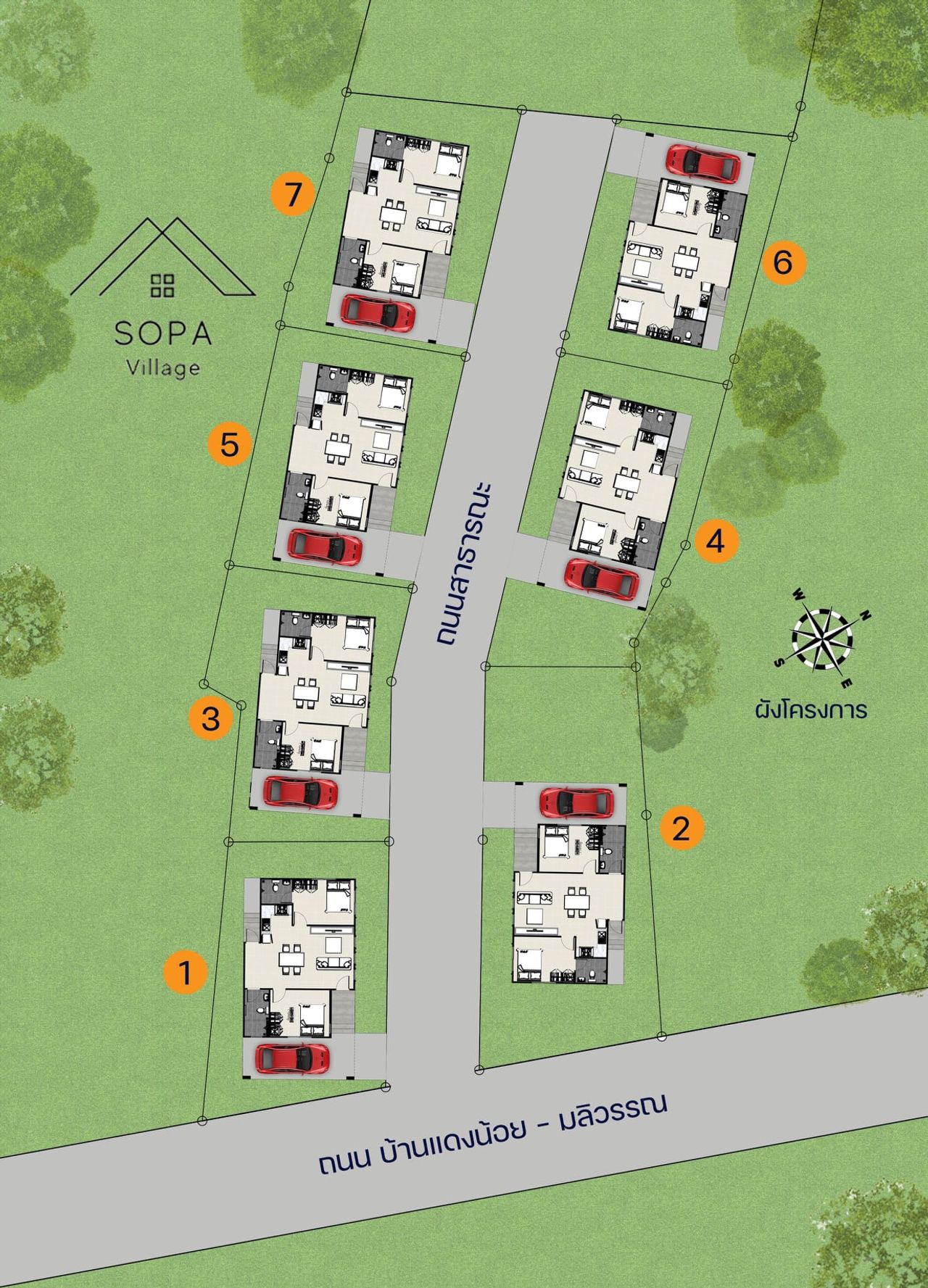 ที่ตั้งใกล้เมือง บนถนนมะลิวัลย์ (บ้านแดงน้อย)