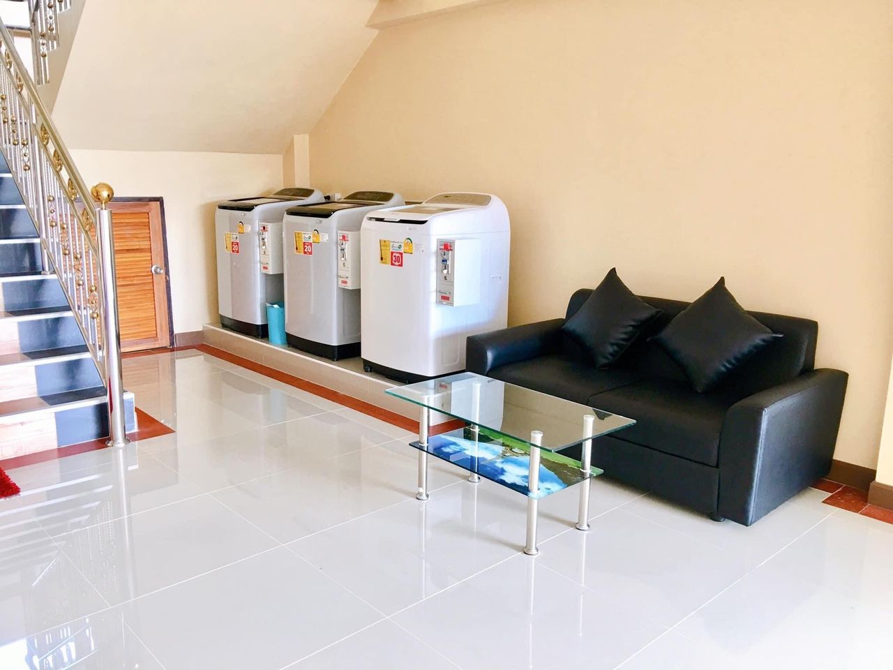 - มีบริการเครื่องซักผ้าหยอดเหรียญ