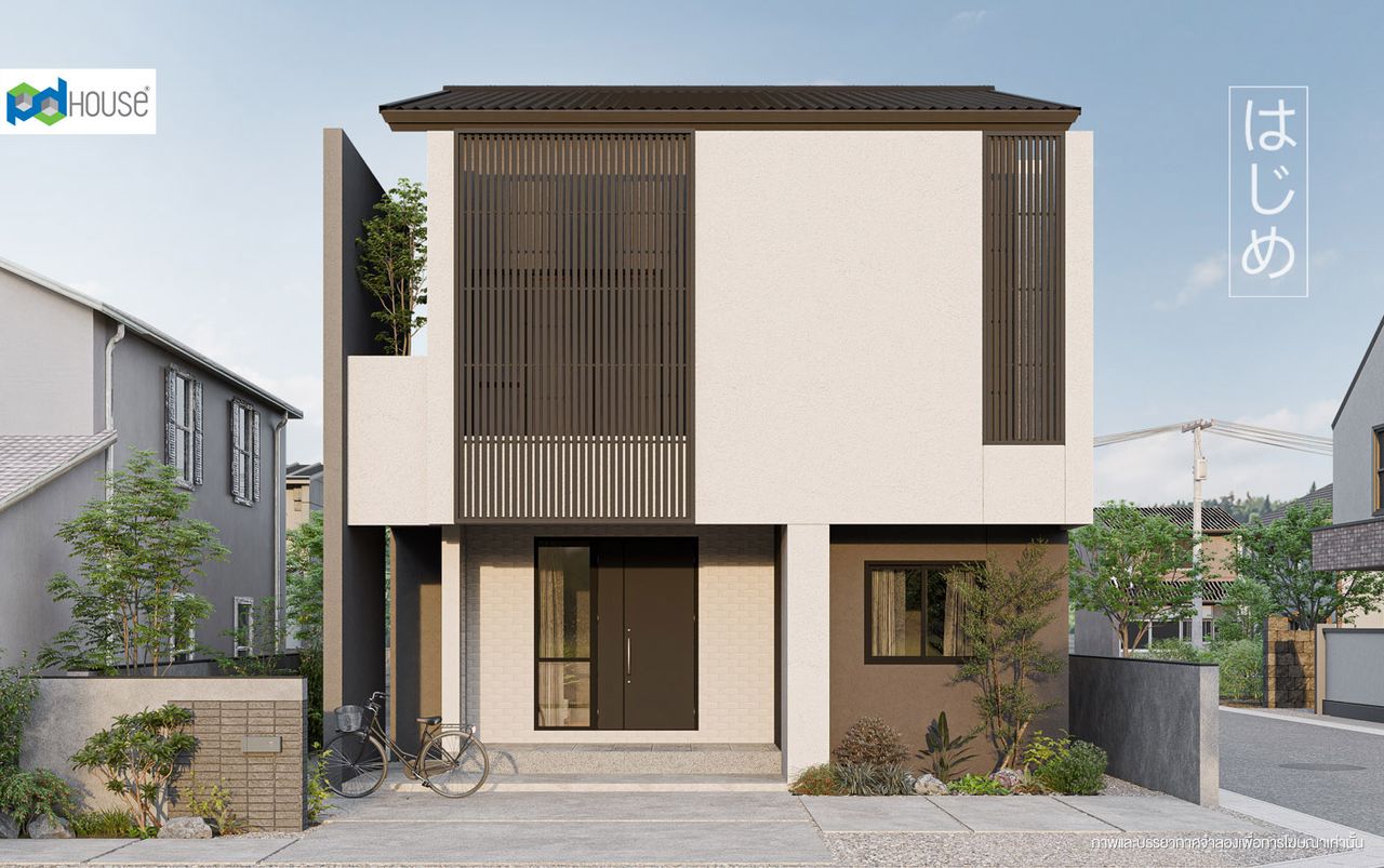 แบบบ้าน 2 ชั้น สไตล์ญี่ปุ่นที่ถูกออกแบบให้สอดรับกับวิถีชีวิต โดดเด่นด้วยรูปทรงที่มีเอกลักษณ์เฉพาะตัว เพิ่มดีไซน์ด้วยผนังลอยด้านข้างเพื่อให้ความเป็นส่วนตัวมากขึ้น พร้อมตกแต่งด้วยระแนงช่วยลดทอนแสงแดดกระทบตัวอาคารและทำให้ตัวอาคารมีมิติมากขึ้น ส่วนพื้นที่ภายในถูกออกแบบให้เป็นสัดส่วน สอดรับกับการใช้ชีวิตในทุกช่วงวัย สะดวกสบายกับห้องนอนชั้นล่างสำหรับผู้สูงอายุ ส่วนชั้นบนถูกออกแบบให้เป็นพื้นที่สำหรับการพักผ่อน โดยห้องนอนใหญ่เชื่อมต่อกับระเบียงใหญ่สามารถเดินรับลมหรือชมบรรยากาศด้านนอกได้อย่างเป็นส่วนตัว