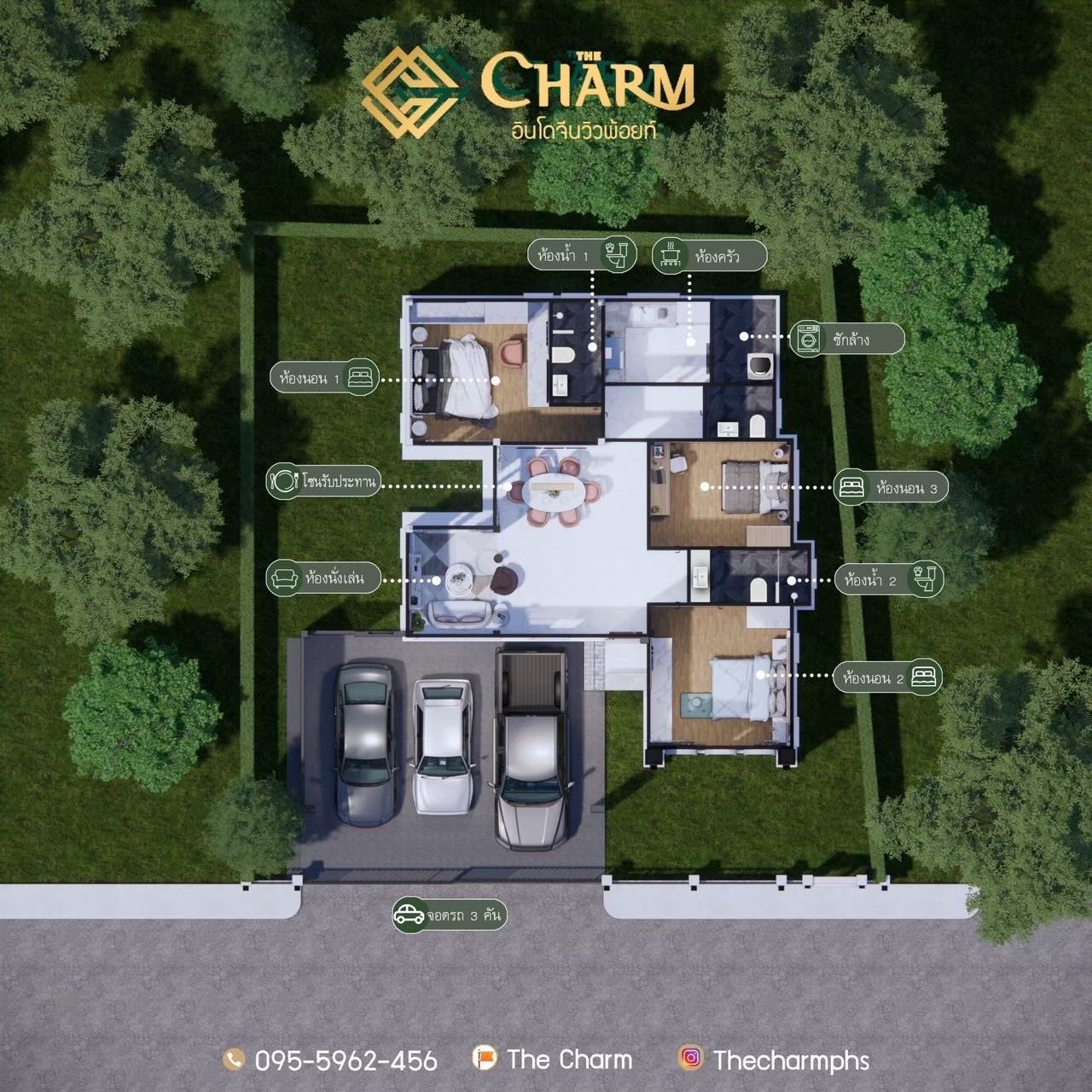 3 ห้องนอน 3 ห้องน้ำ 3 จอดรถ