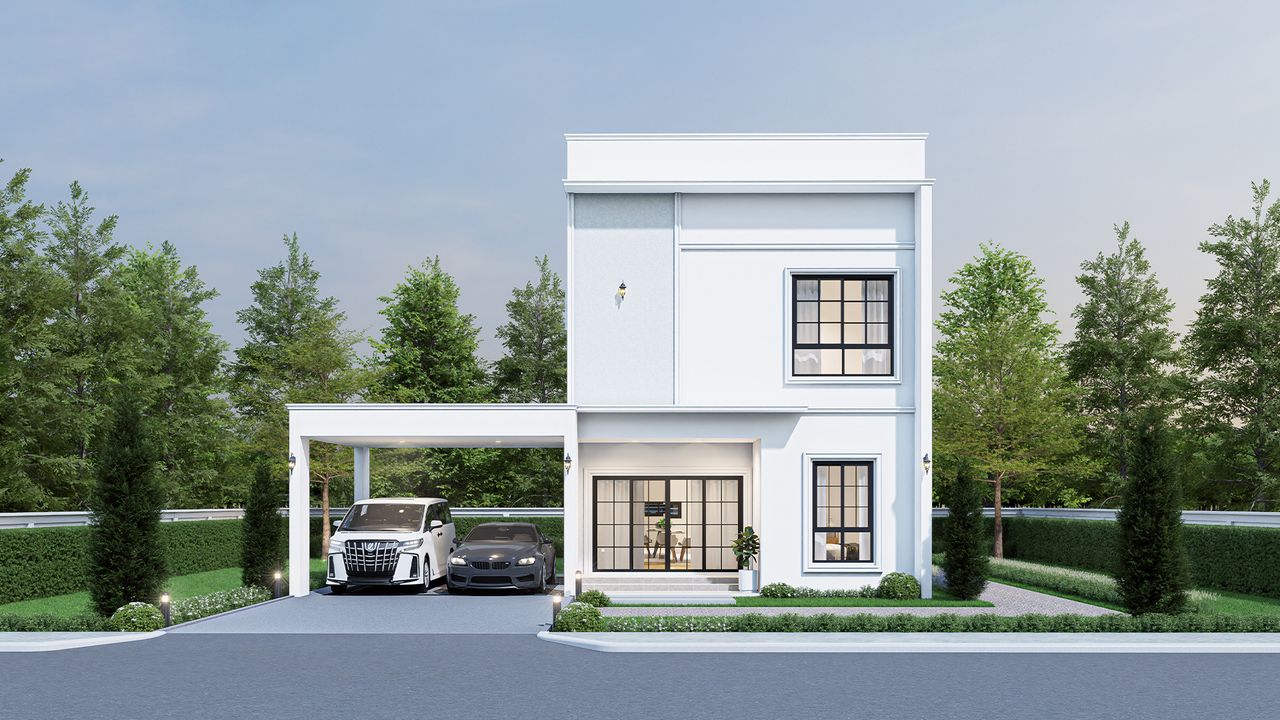 แบบบ้าน 2 ชั้น 3 ห้องนอน 3 ห้องน้ำ จอดรถได้ 2 พื้นที่ใช้สอย 171 ตารางเมตร
