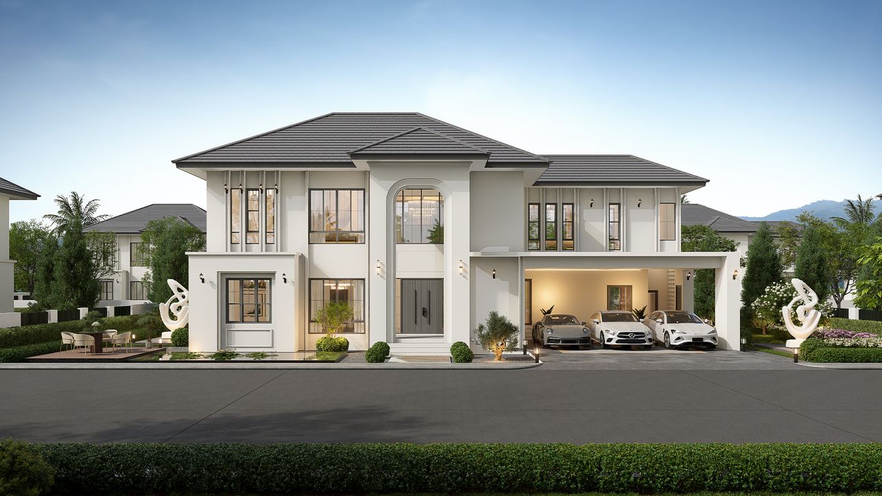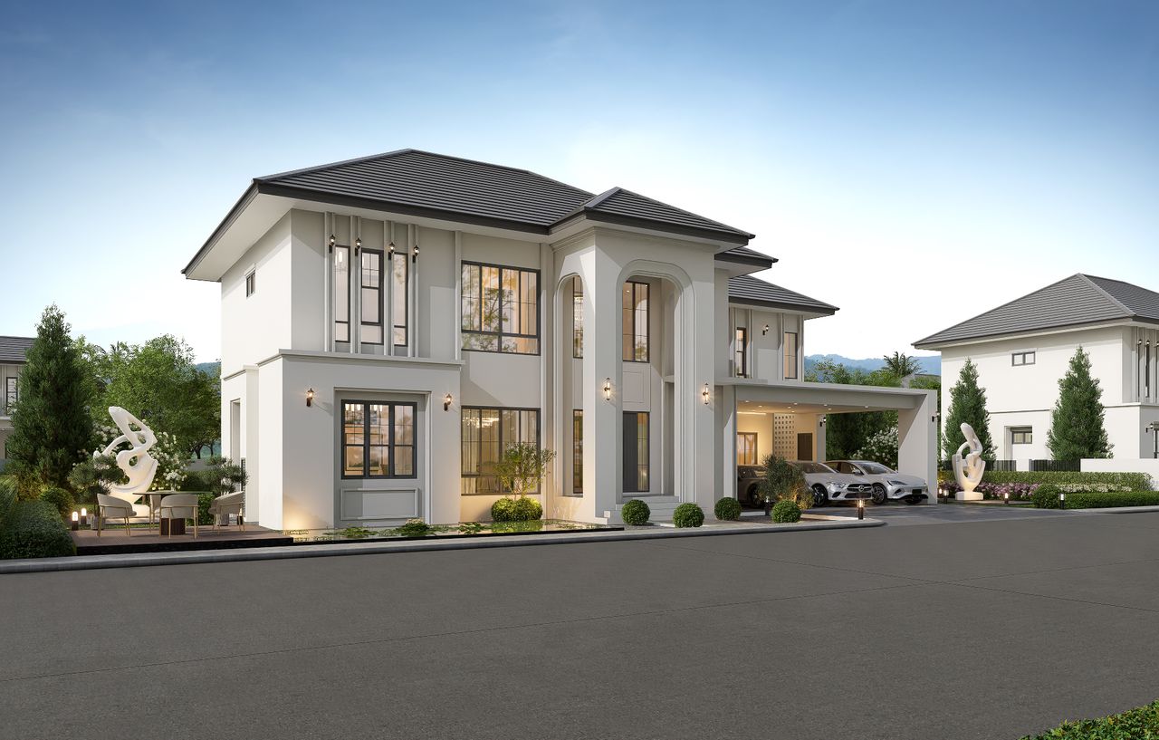 แบบบ้าน 2 ชั้น 4 ห้องนอน 5 ห้องน้ำ จอดรถได้ 3 พื้นที่ใช้สอย 311 ตารางเมตร