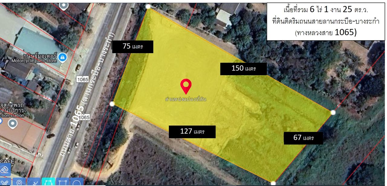 ขนาดพื้นที่ 6ไร่ 1งาน 25ตารางวา