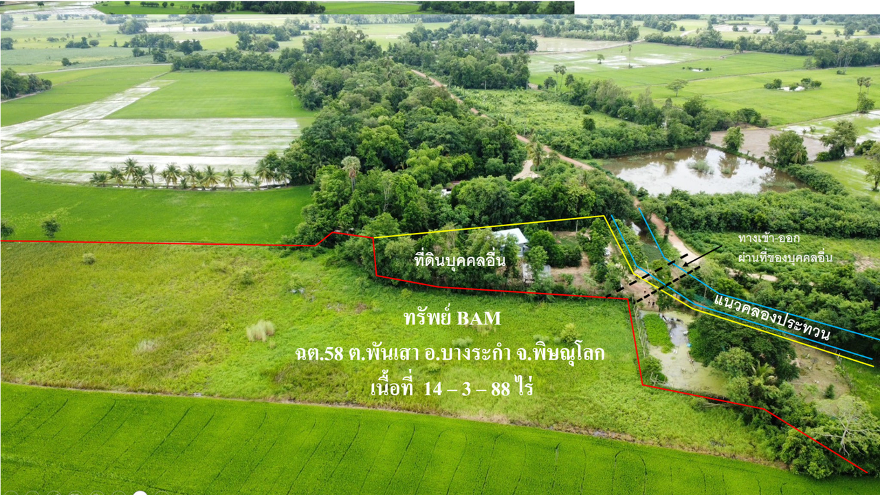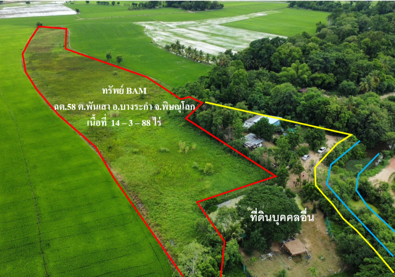 ขายที่ดินเปล่า 14ไร่ 3งาน 88ตารางวา ราคาถูกเพียง 0 บาท ในอำเภอบางระกำ ตำบลพันเสา