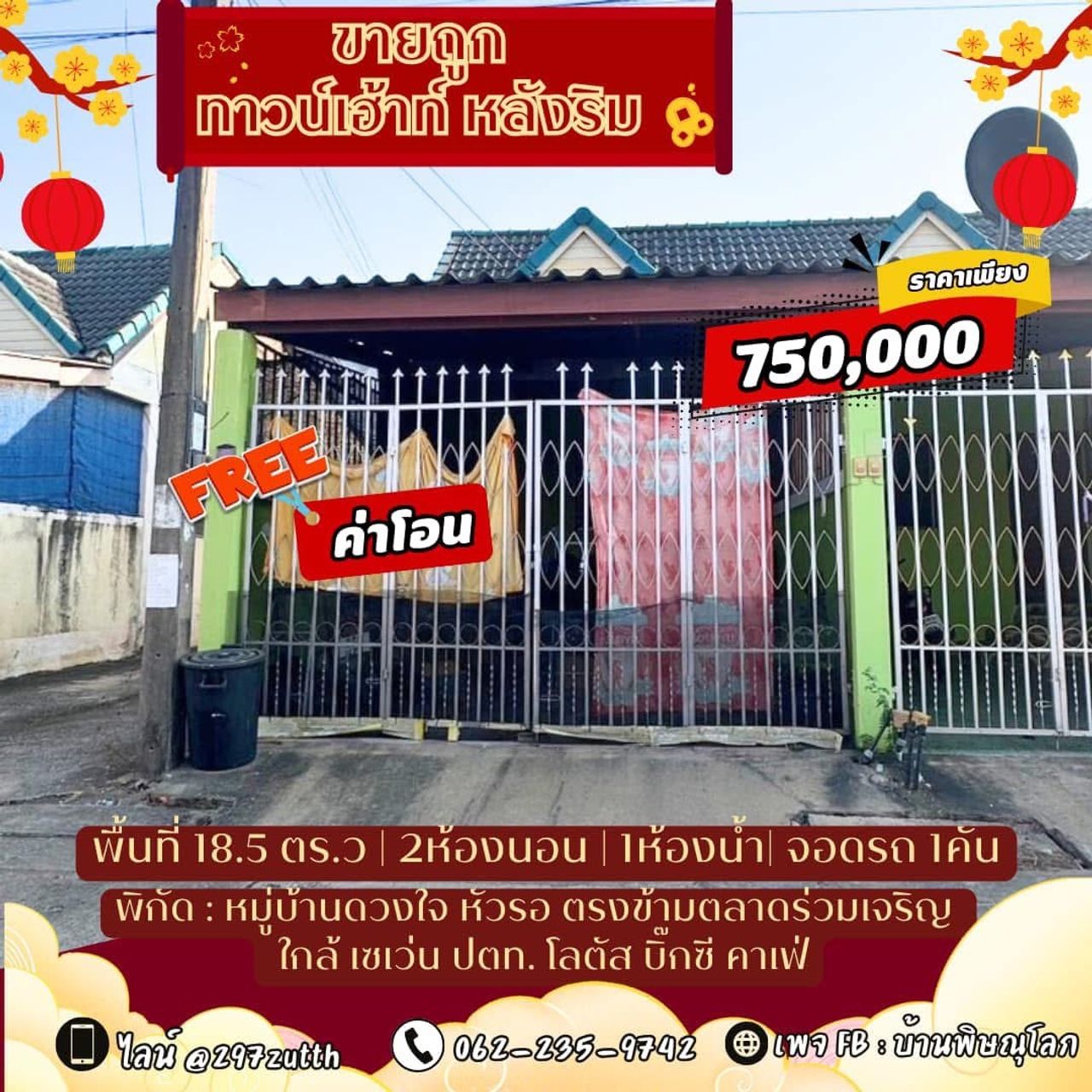 ขายบ้านทาวน์เฮ้าส์ราคาถูก ตรงข้ามตลาดหัวรอแยกไทยแอร์ไรว์ ติดถนนหลัก เต็งหนาม - เมืองพิษณุโลก - หัวรอ