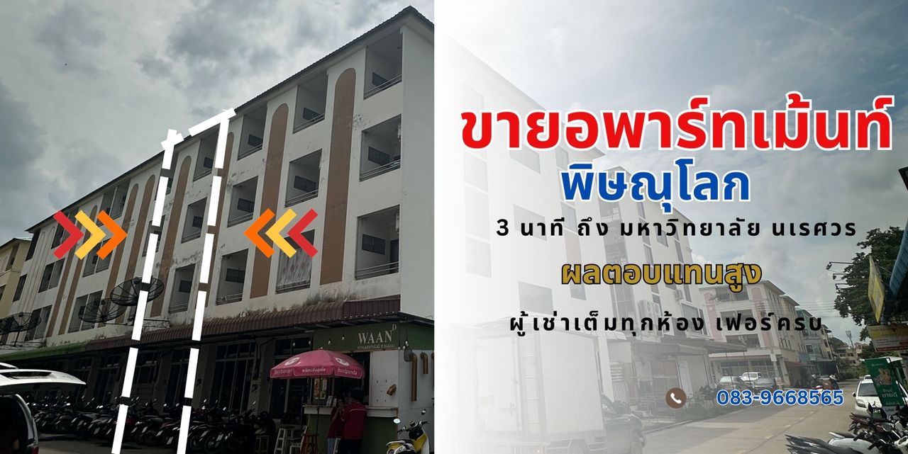 ขายหอพัก/อพาร์ทเม้นท์ เมือง พิษณุโลก ผลตอบแทนสูง เหมาะกับนักลงทุนและผู้สนใจลงทุนในอสังหาที่มีผลตอบแทนสูง คืนทุนไว ม.นเรศวร - เมืองพิษณุโลก - ท่าโพธิ์