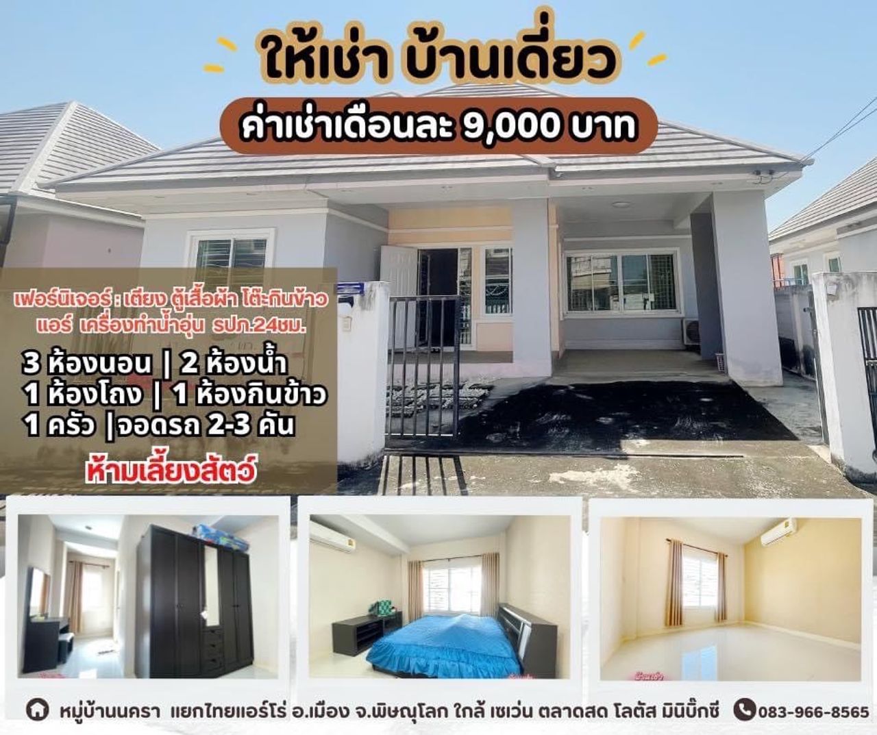 💰 ค่าเช่าเดือนละ 9,000 บาท