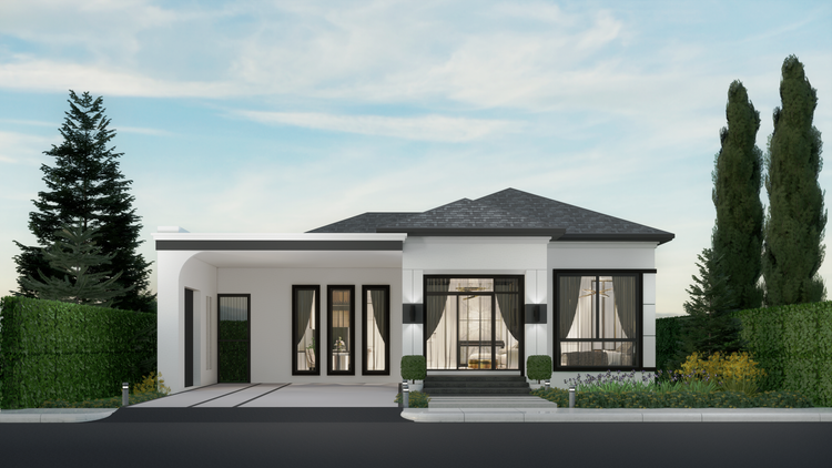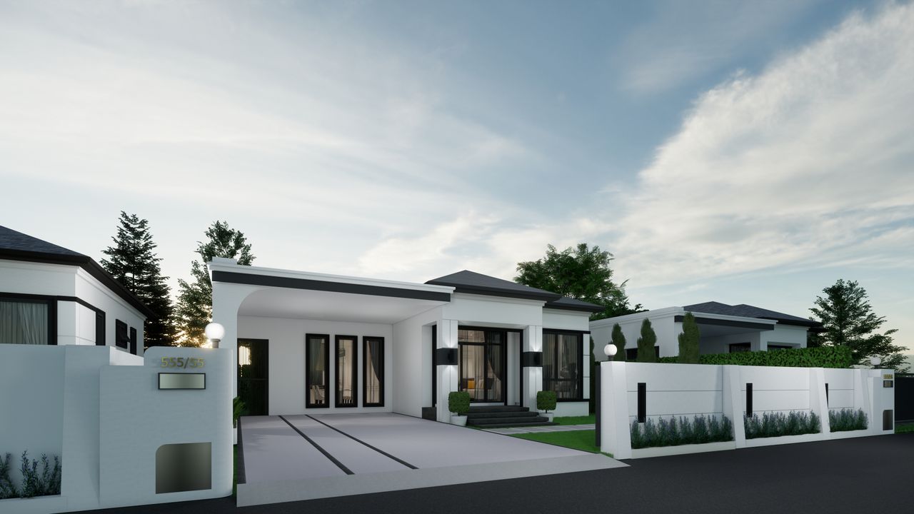 • บ้านเดี่ยว 1 ชั้น 3 ห้องนอน 2 ห้องน้ำ ที่จอดรถ 2 คัน พื้นที่ใช้สอย 130 ตารางเมตร