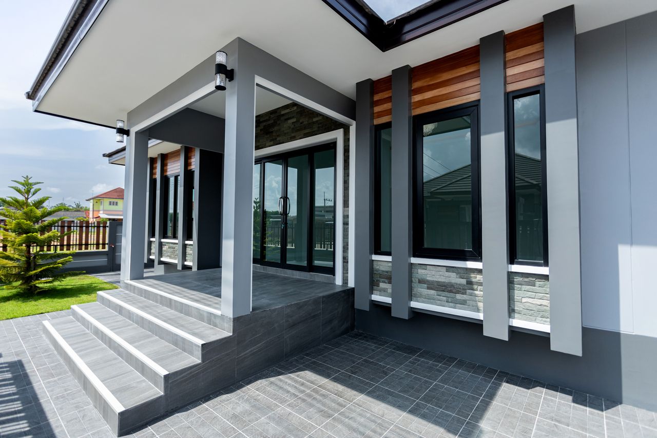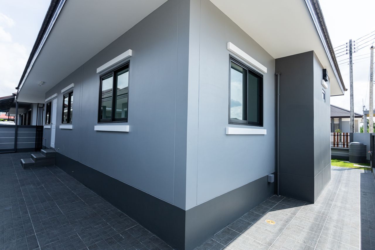 - ปูกระเบื้องรอบบ้าน
