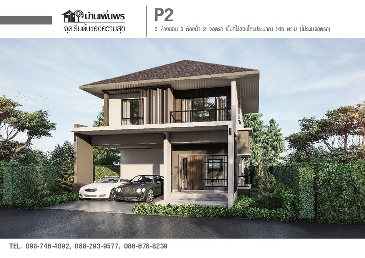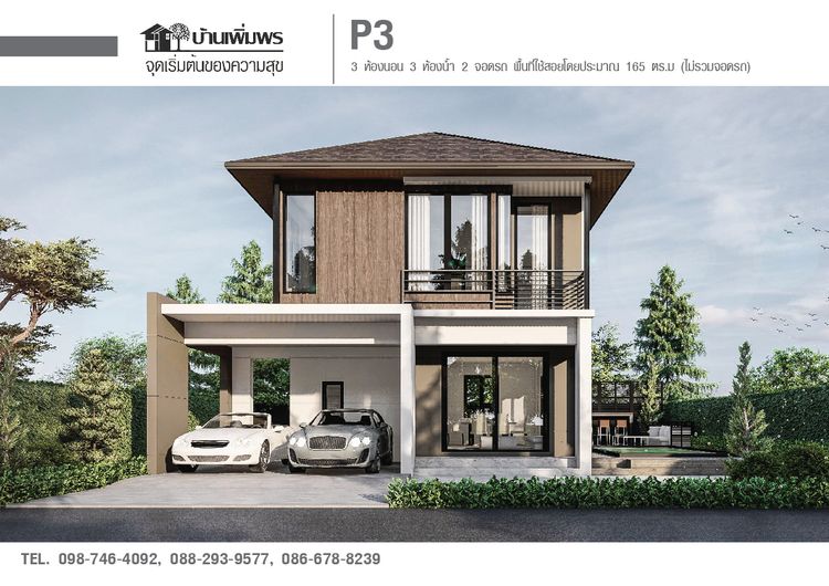 - แบบ P3 บ้านเดี่ยว 2 ชั้น 3 ห้องนอน 3 ห้องน้ำ ที่จอดรถ 2 คัน พื้นที่ใช้สอย 165 ตรม ที่ดินขนาด 67 ตร.ว ขึ้นไป