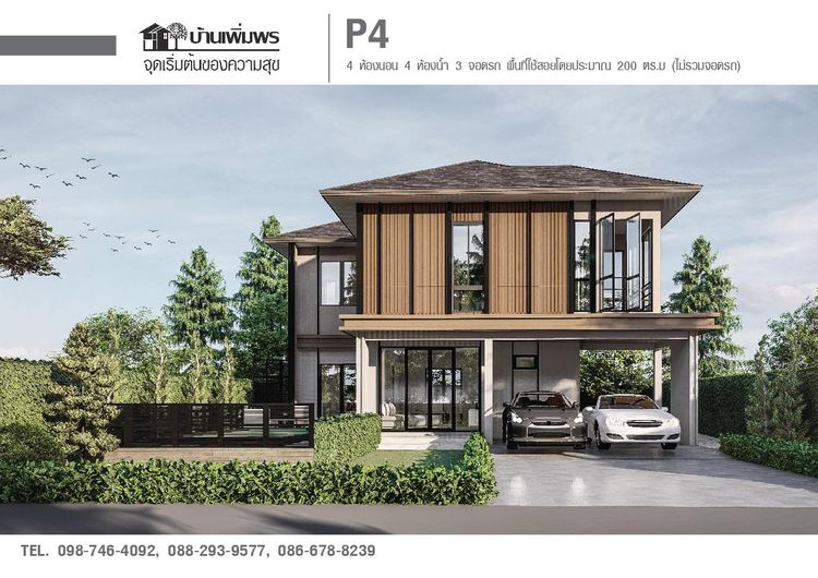 - แบบ P4 บ้านเดี่ยว 4 ห้องนอน 4 ห้องน้ำ ที่จอดรถ 3 คัน พื้นที่ใช้สอย พื้นที่ใช้สอย 220 ตร.ม ที่ดินขนาด 65-80 ตร.ว ขึ้นไป