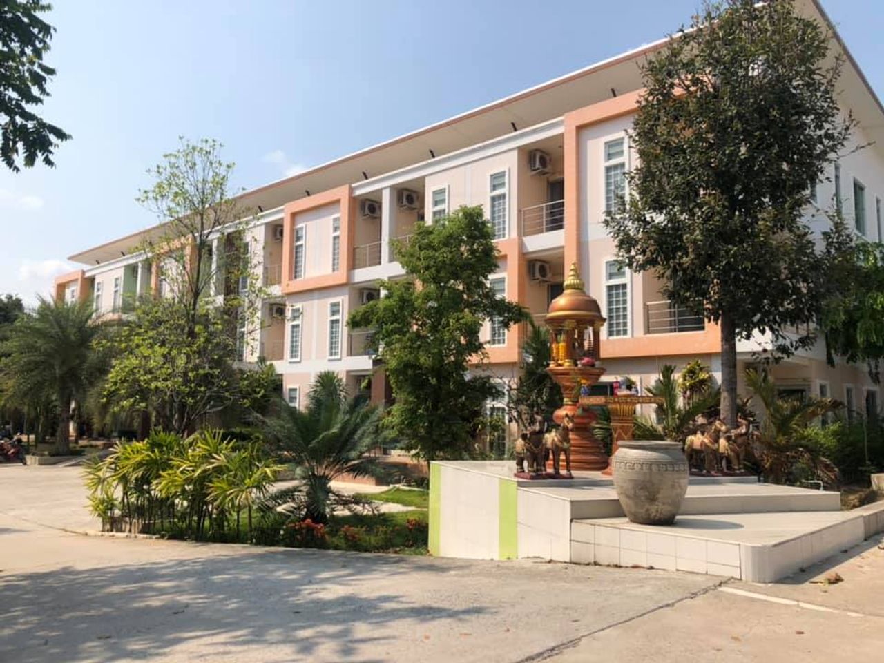 สภาพแวดล้อมไม่แออัด ไม่เสียงดัง สะอาดสะอ้าน ต้นไม้ร่มเย็น ที่จอดรถมีหลังคาเพียบ