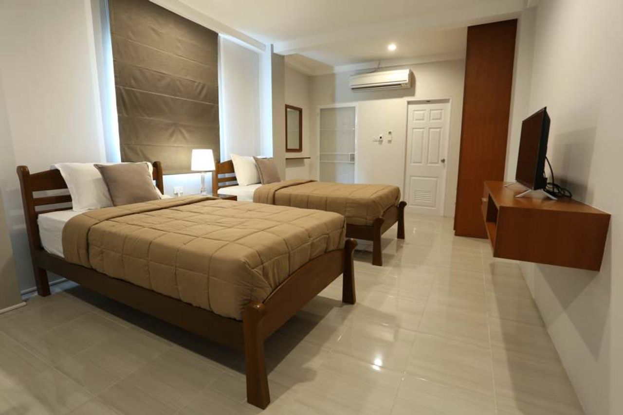 ห้องเตียงคู่ เตียงไม้สักขนาด 3.5 ฟุต จำนวน 2 เตียง