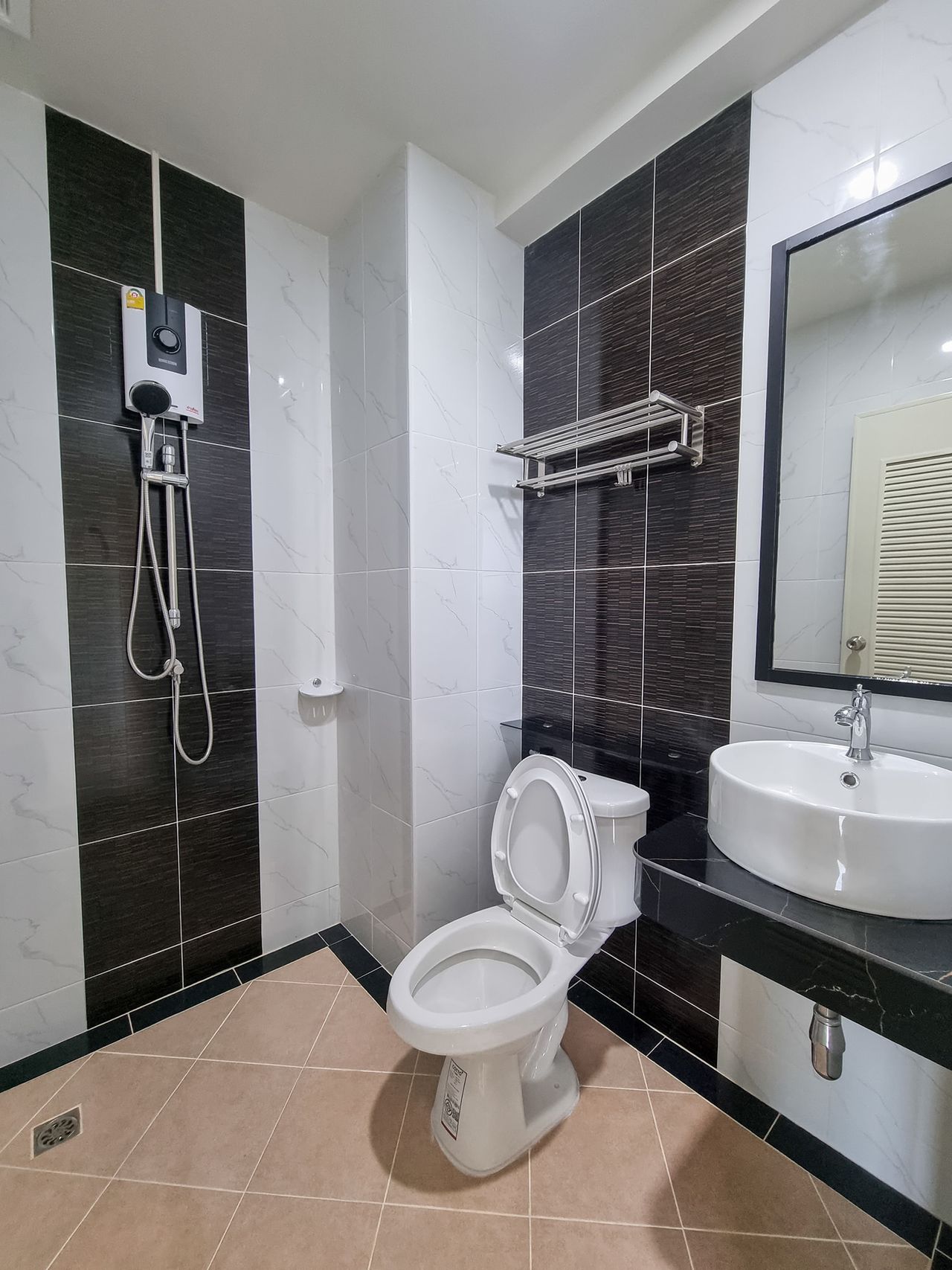 - มีเฟอร์นิเจอร์ เตียง 5 ฟุต แอร์ ตู้เย็น เครื่องทำน้ำอุ่นพร้อม ใหม่ทุกอย่าง