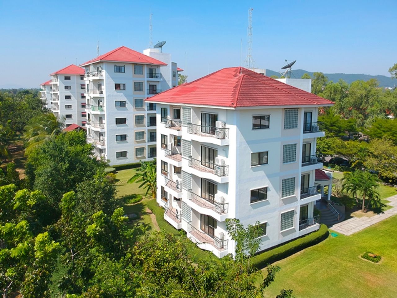 Air Conditioning • Closet • Single or Double Bed • Dressing wardrobe • Desk • Sofa • Sink • TV • Refrigerator • Water Heater • Cable TV • Free wifi • Laundry • Vending Machine • Elevator • Conference Room • Garden • Car Parking • The Sphere Sport Club - Enjoy dining experience with a luxurious atmosphere providing a panoramic view of the golf course.