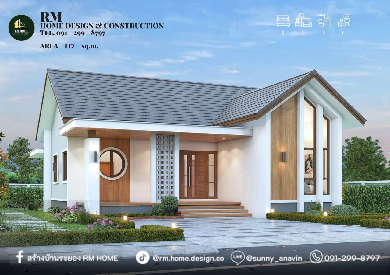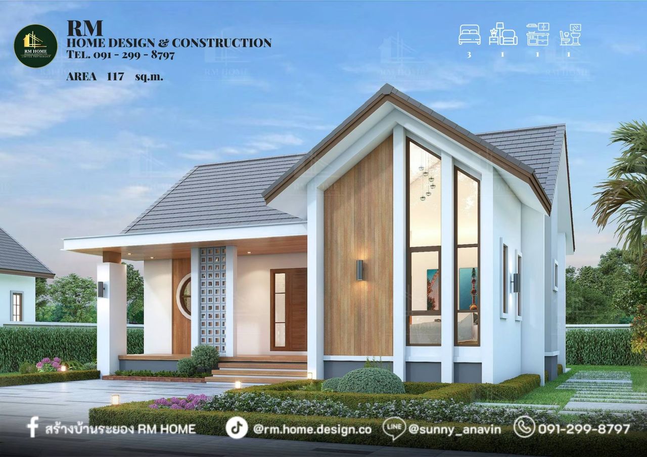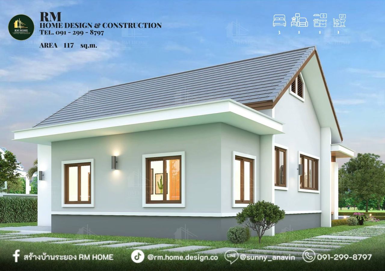 บ้านทรงจั่วมินิมอล หจก อาร์เอ็ม โฮม ดีไซน์ แอนด์ คอนสตรัคชั่น - RM HOME DESIGN & CONSTRUCTION LIMITED PARTNERSHIP