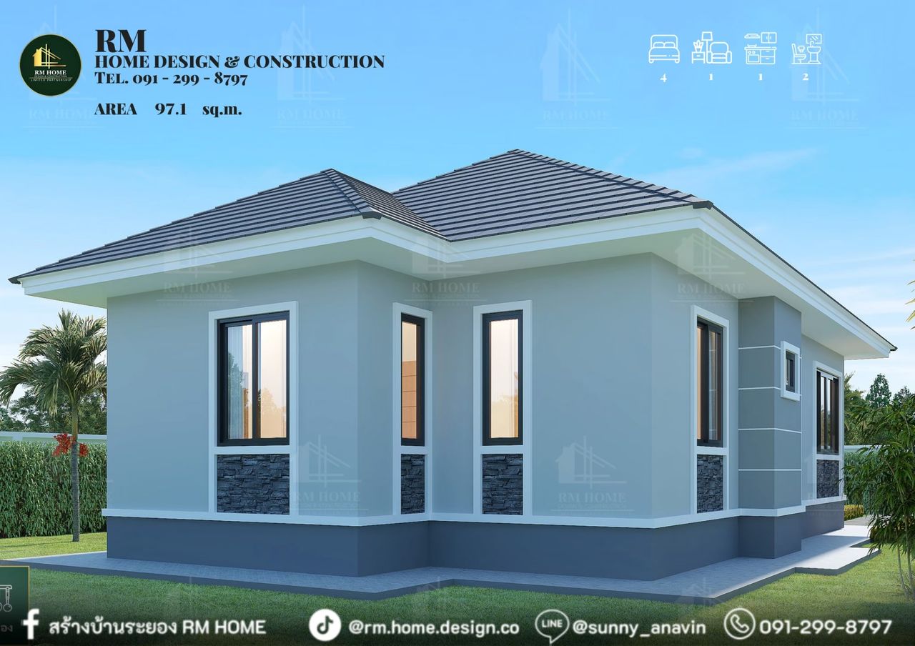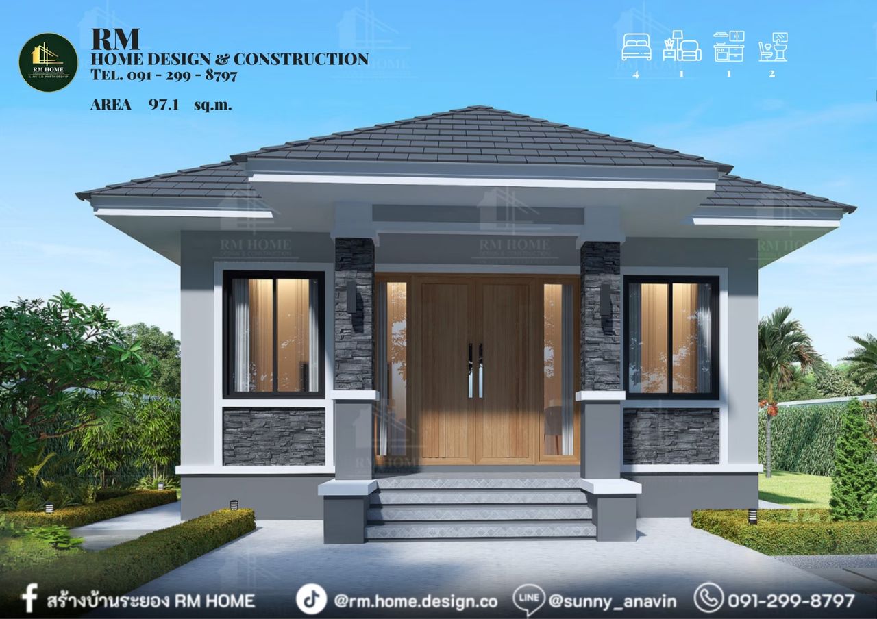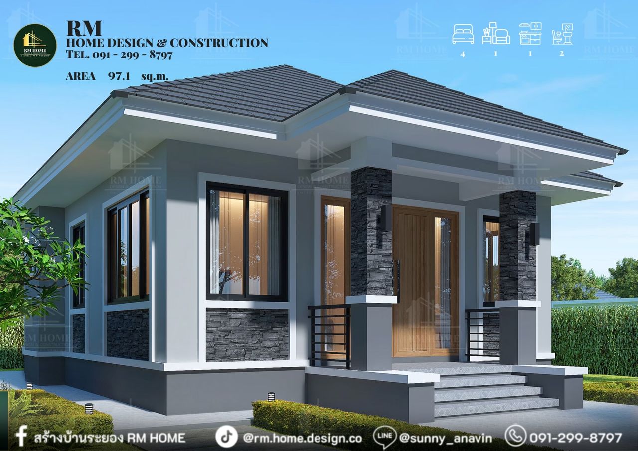 บ้านปั้นหยาชั้นเดียว หจก อาร์เอ็ม โฮม ดีไซน์ แอนด์ คอนสตรัคชั่น - RM HOME DESIGN & CONSTRUCTION LIMITED PARTNERSHIP คอนเทมโพรารี่
