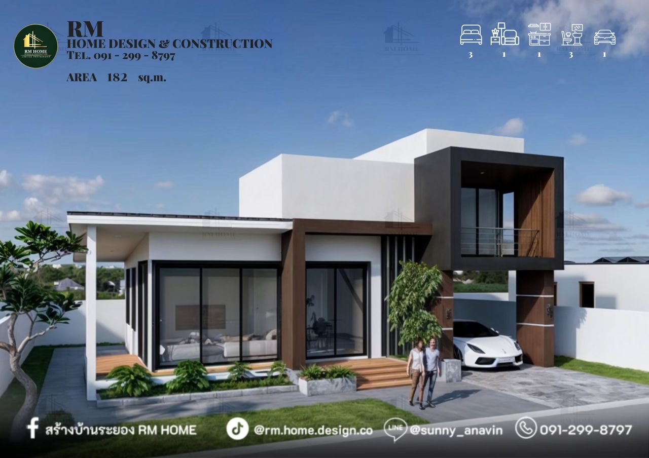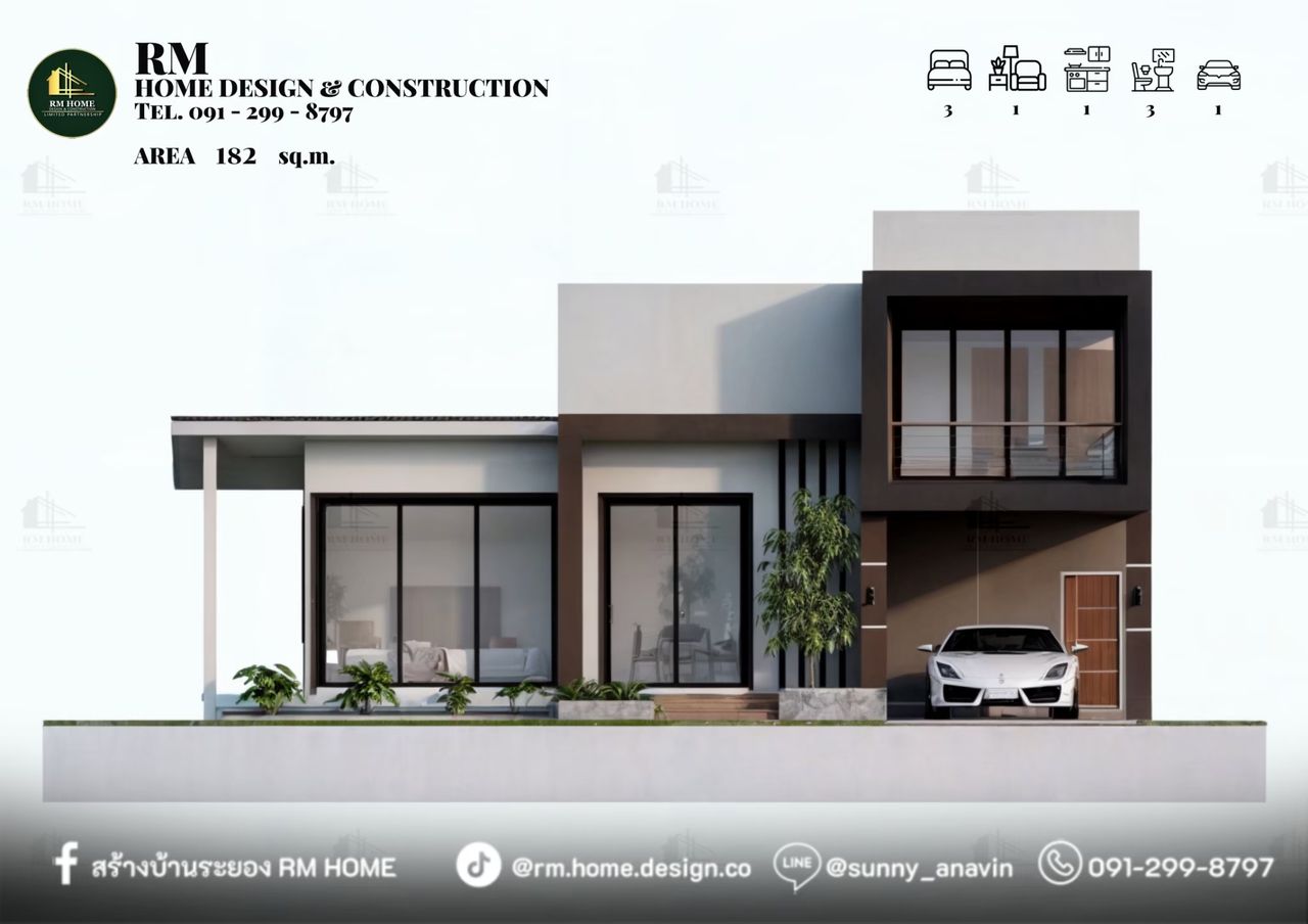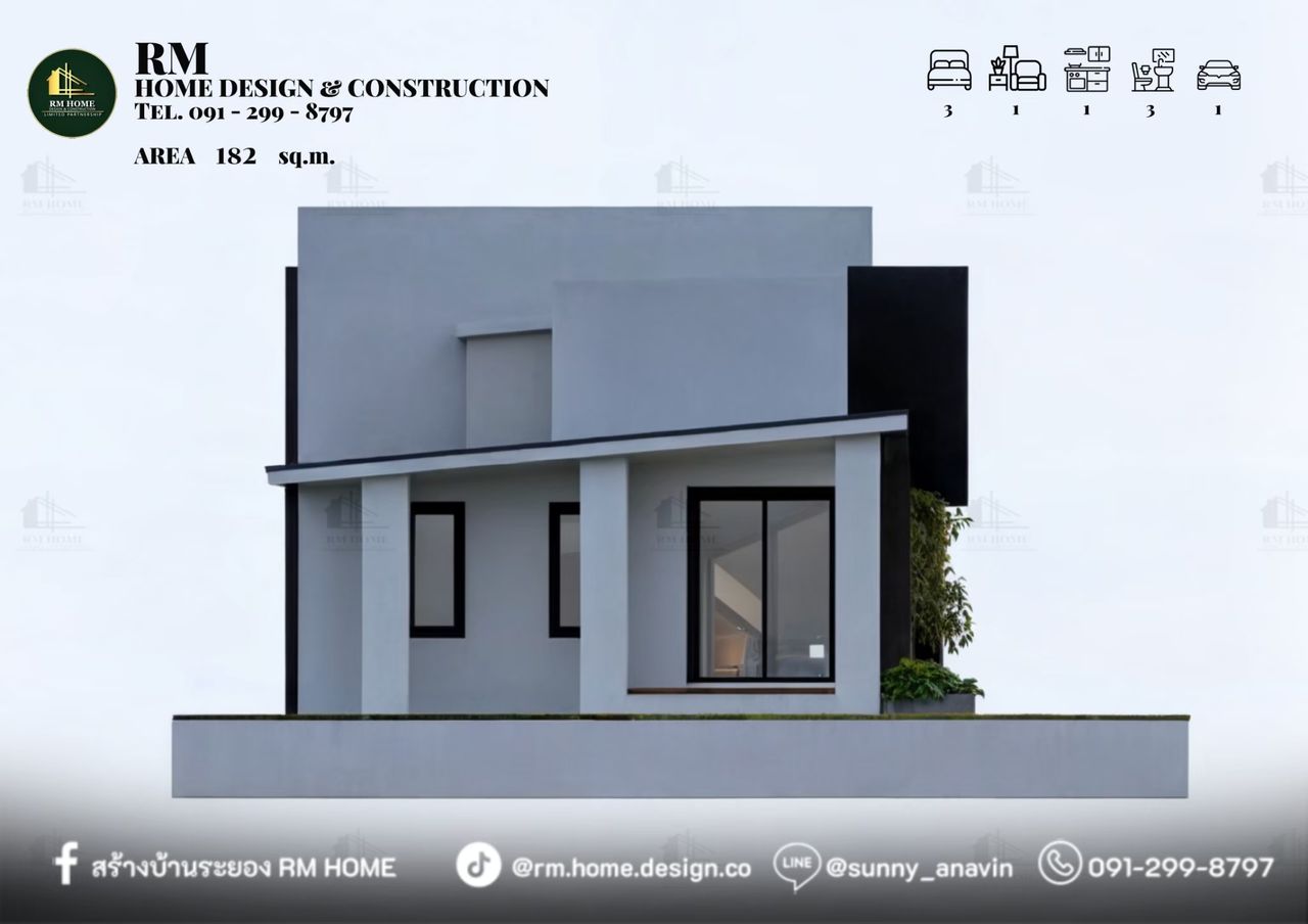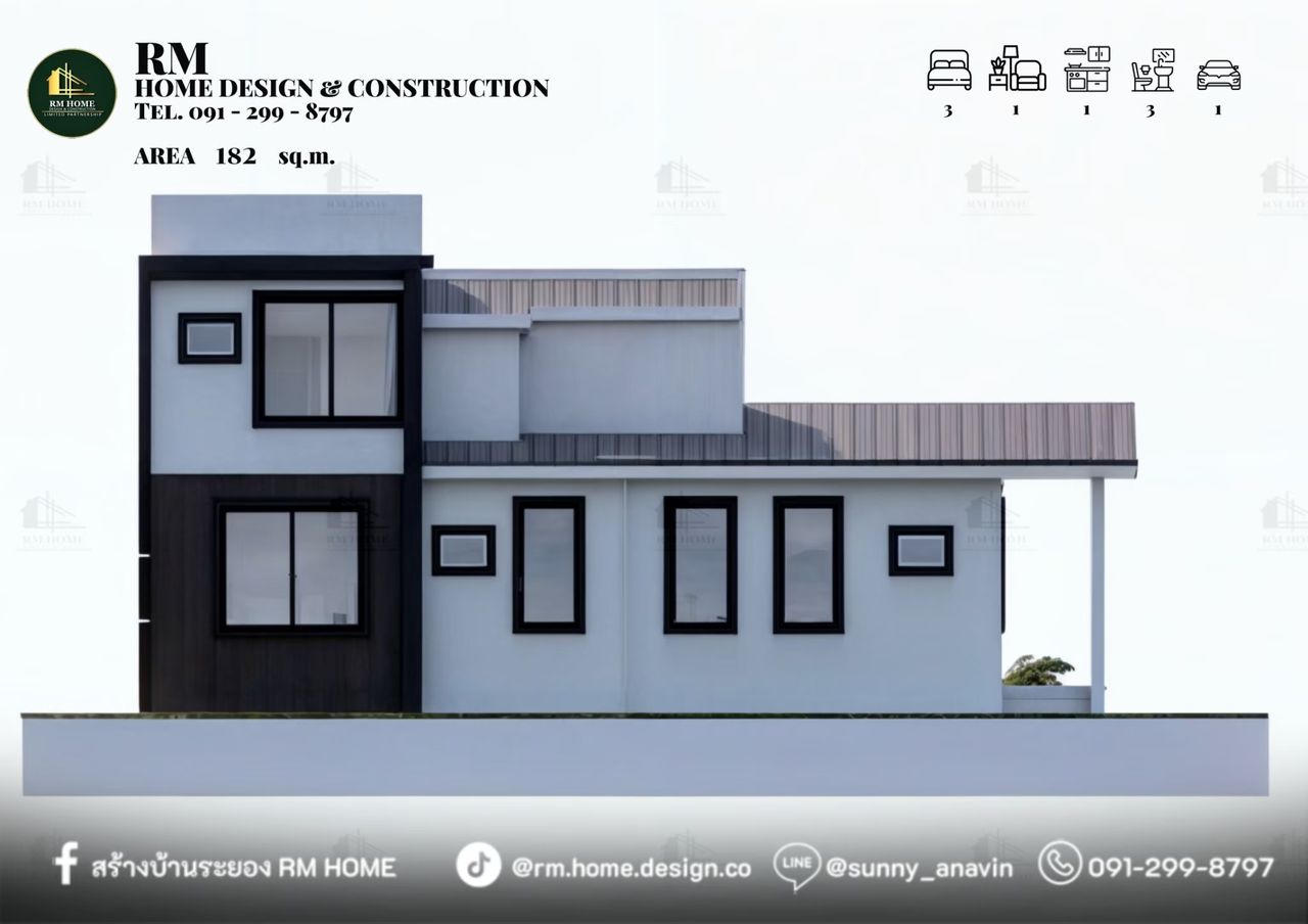 พื้นที่ใช้สอยรวม 182 ตร.ม.