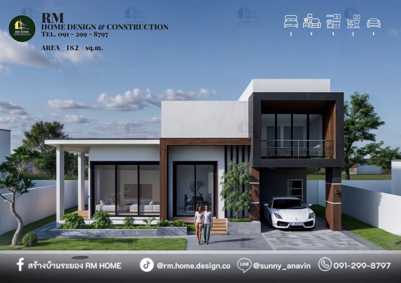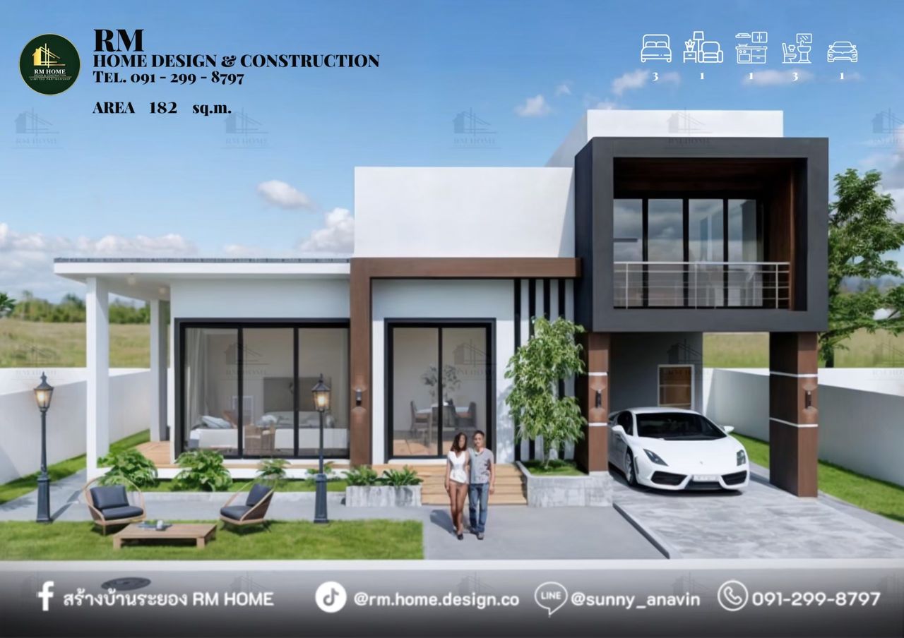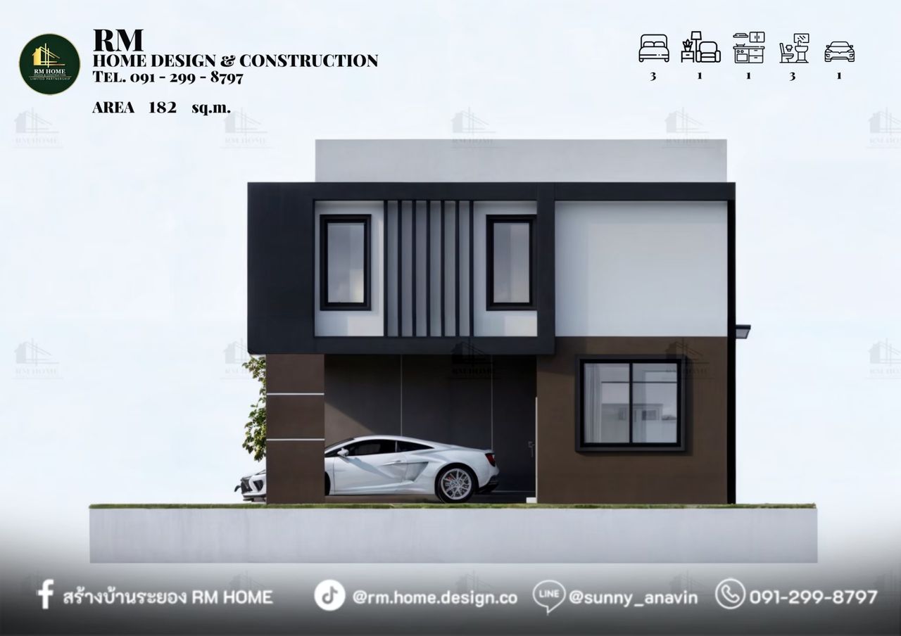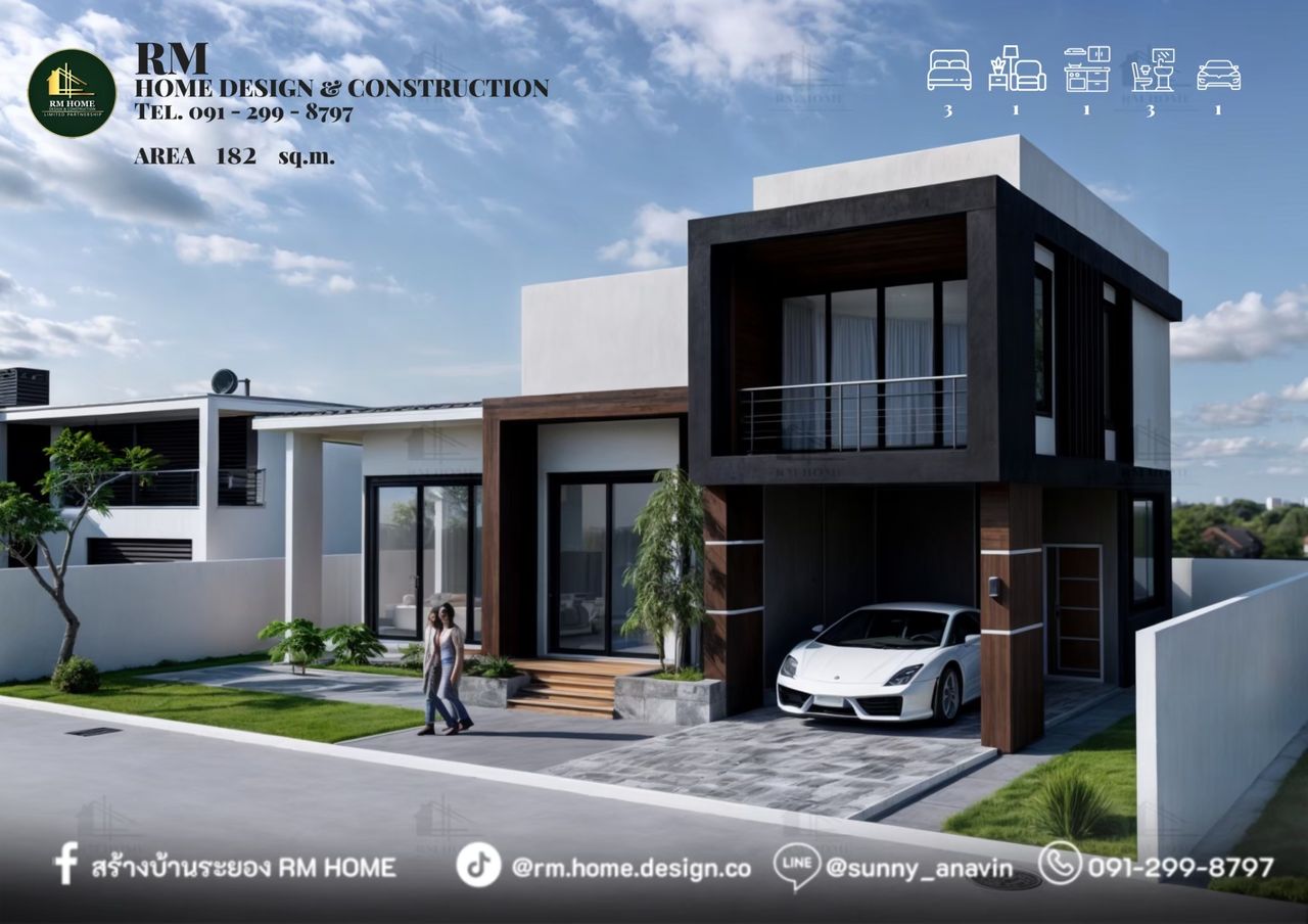 พื้นที่ใช้สอยรวม 182 ตร.ม.