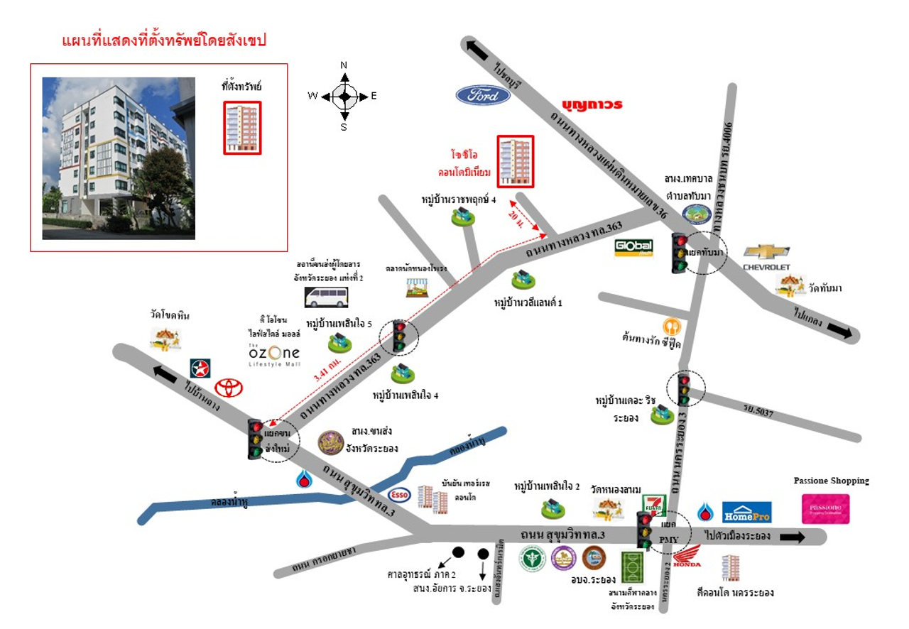 ที่ตั้ง : คอนโดเลขที่ 140/49 โครงการโซซิโอ คอนโดมิเนียม ชั้นที่ 6,7 อยู่ห่างจากถนนทางหลวงแผ่นดินหมายเลข 36 ประมาณ 420 ม.
