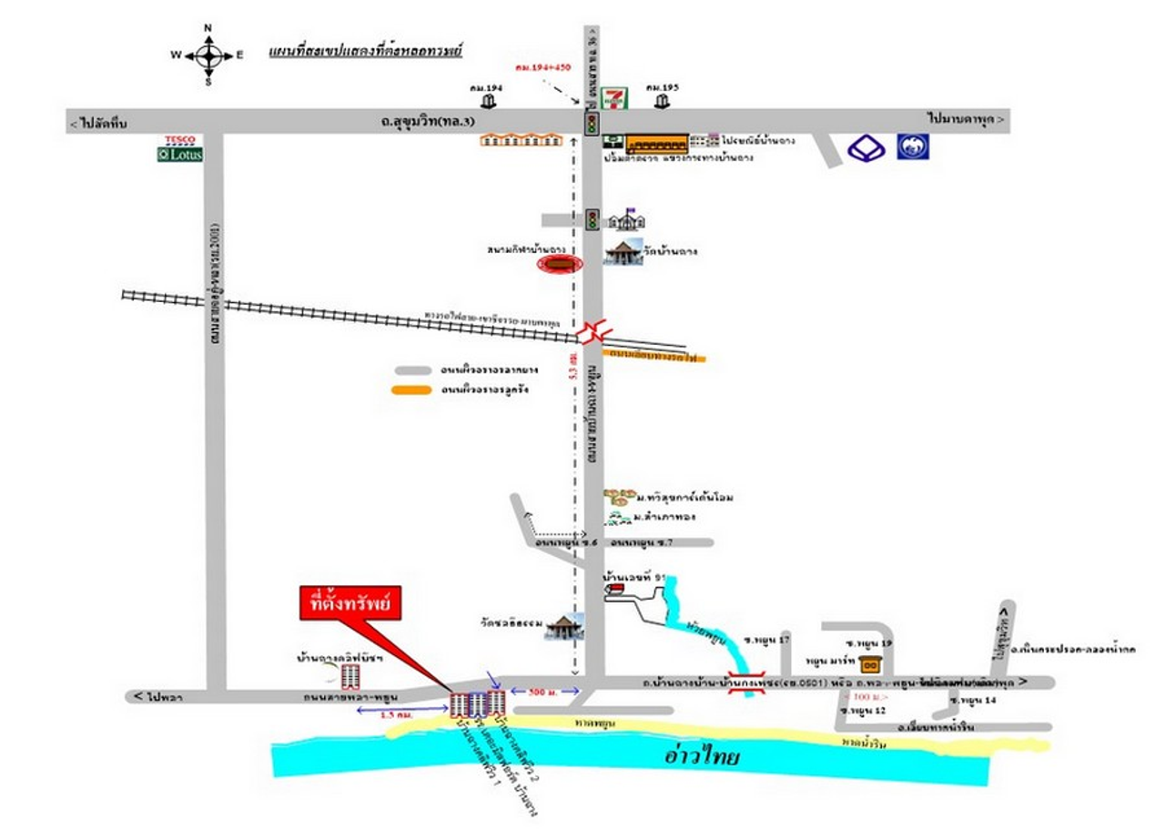 ที่ตั้ง : โครงการ บ้านฉางคลิฟวิว แยกจากถนน สุขุมวิท (ทล.3) กม.194+600 เข้าถนนสาย บ้านฉาง-พยูน ประมาณ 5.3 กม. เลี้ยวขวาถนนสาย พลา-พยูน ประมาณ 300 ม. ตำบล พลา