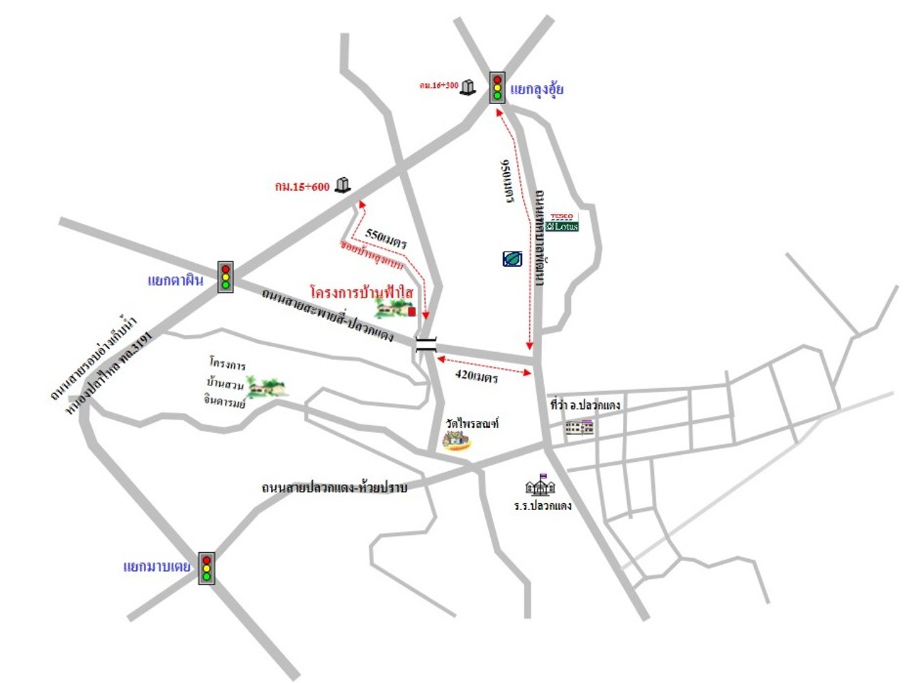 ที่ตั้ง : บ้านเลขที่ 560/12 ในโครงการหมู่บ้านฟ้าใส ซอยบ้านลุงแบน ถนนสายสะพายสี่-ปลวกแดง ตำบลปลวกแดง
