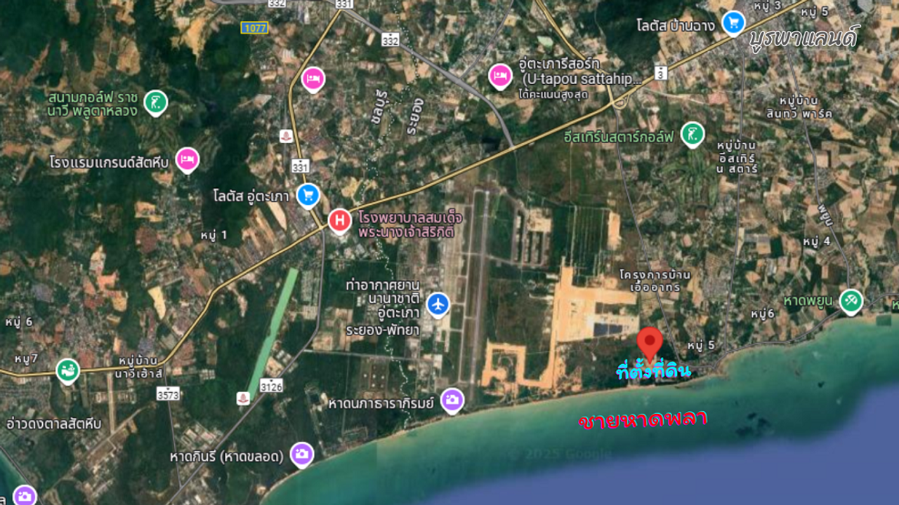 ขายที่ดินทำเลทอง "หาดพลา – บ้านฉาง" ใกล้สนามบินอู่ตะเภา ติดถนนใหญ่ วิวสวย