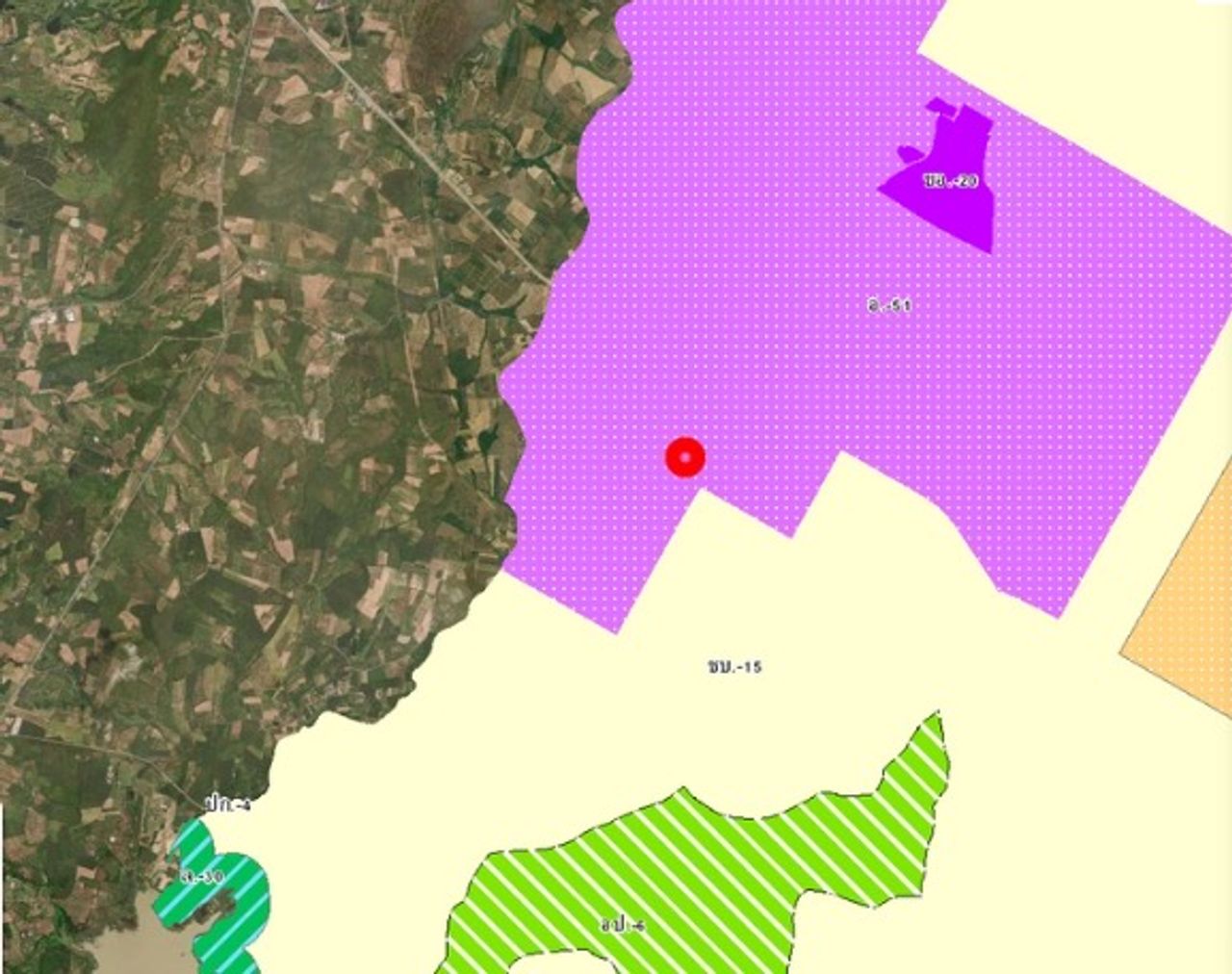 ผังเมือง : พื้นที่สีม่วงอ่อนจุดสีขาว เขตพัฒนาอุตสาหกรรม อยู่ในเขต ECC ถนนลาดยาง ถนนสายหลักมี 2 เลน และ4เลน
