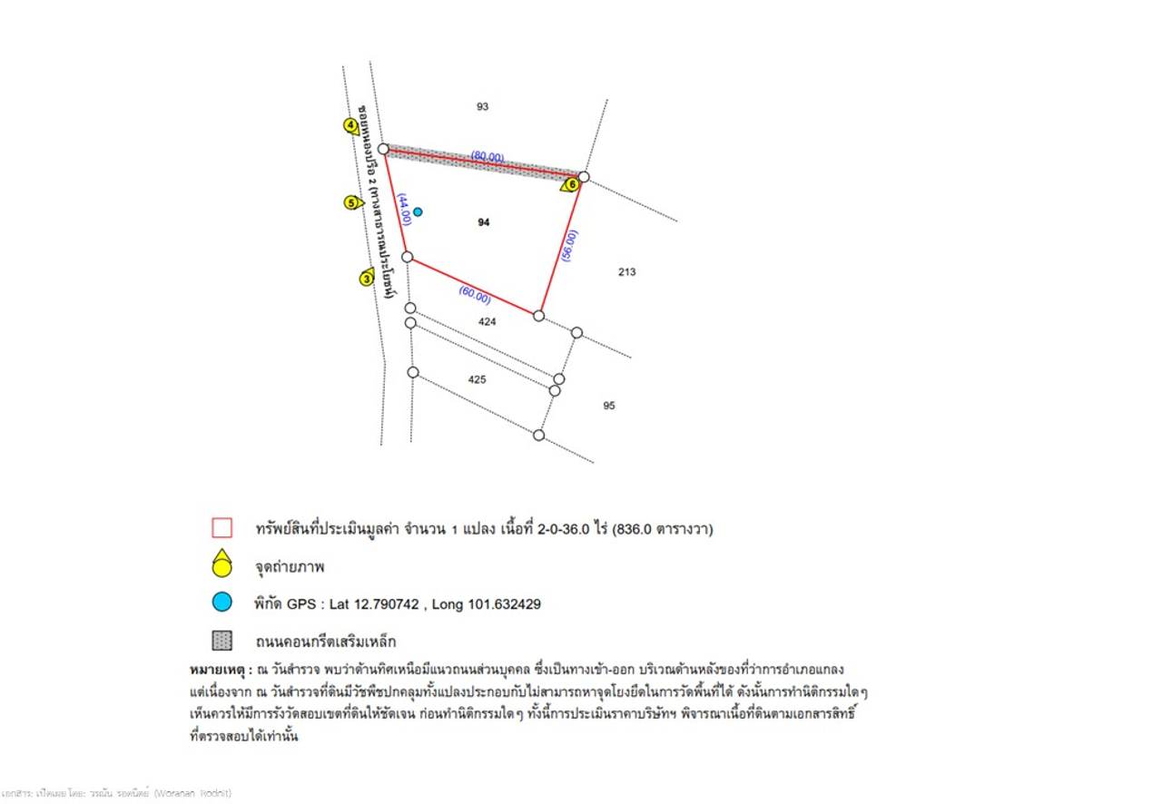 ขายที่ดินเปล่า 2ไร่ 36ตารางวา ราคา 3.07 ล้านบาท ในอำเภอแกลง ตำบลทางเกวียน