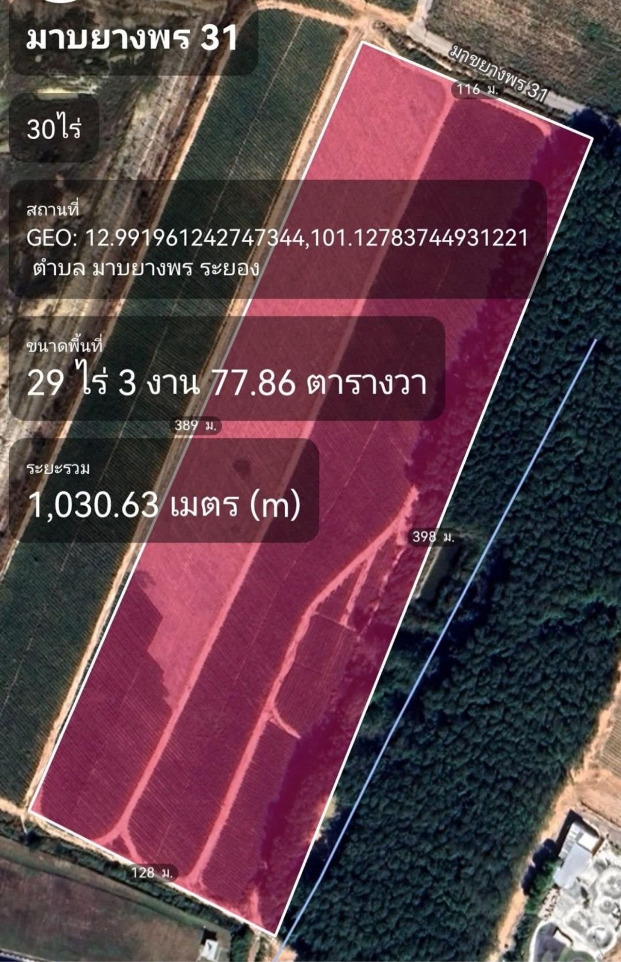 ขายที่ดิน ติดนิคมอีสเทิร์นซีบอร์ด เข้าซอย มาบยางพร 27 หรือ 31
