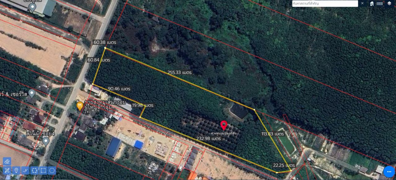 หน้ากว้างติดถนนซอย 4 ประมาณ 60 เมตร ลึกยาวประมาณ 250 เมตร