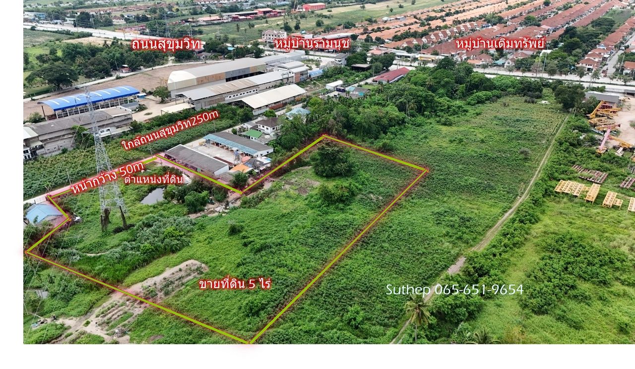 • ขนาด 5 ไร่ กำลังดี รูปทรงสวย เหมาะสร้างโกดัง Workshop หรือขยายธุรกิจ