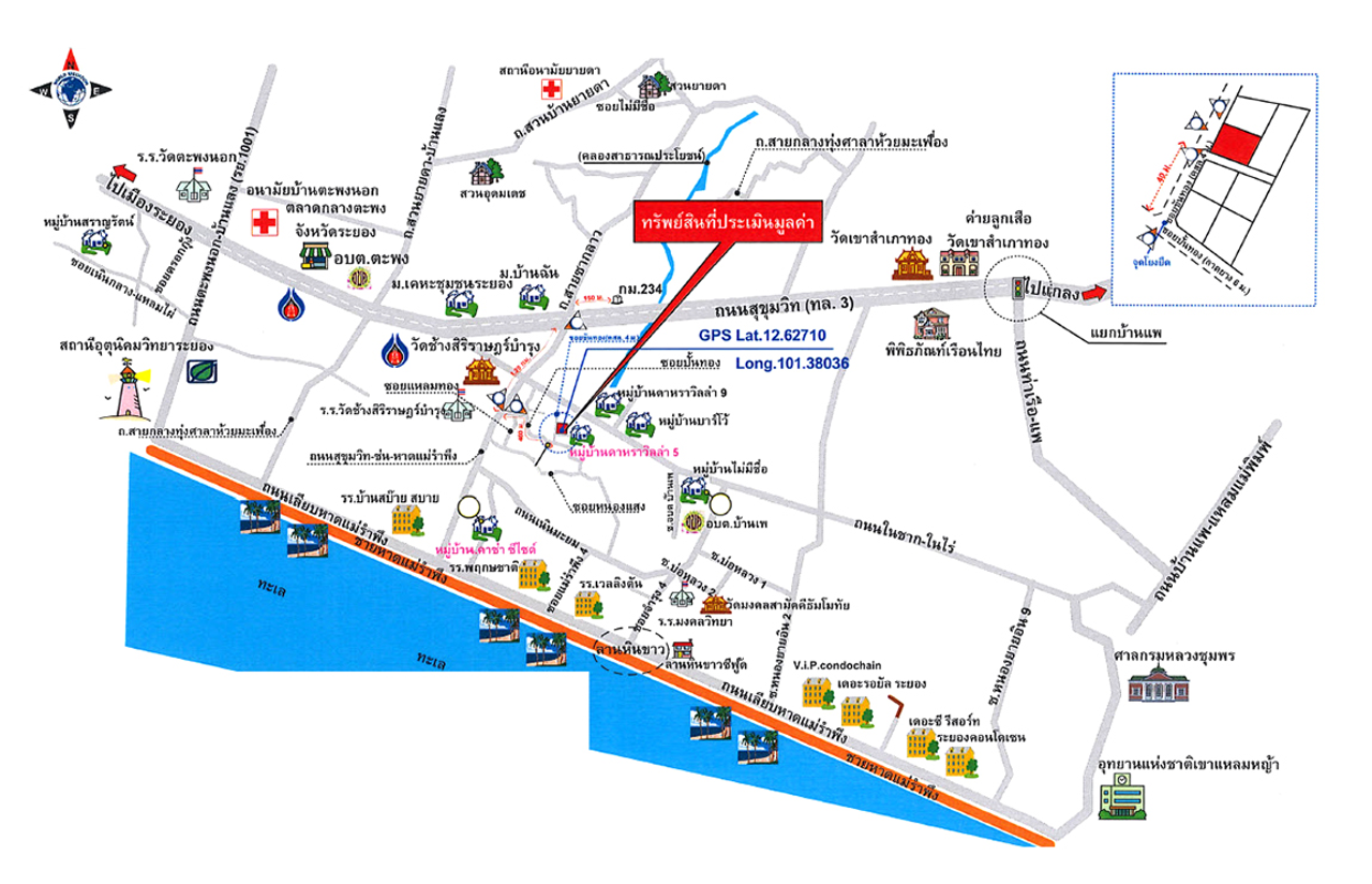 รายละเอียดเลขที่เอกสารสิทธิ์ : ที่ดินพร้อมสิ่งปลูกสร้าง 157376 ระยอง อำเภอเมืองระยอง ตำบลตะพง
