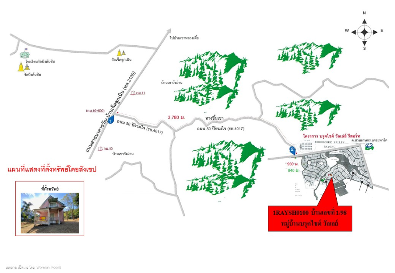 ที่ตั้ง : เลขที่ 1/98 หมู่บ้านบรุคไซด์ วัลเล่ย์ ห่างจากตัวเมืองระยอง ประมาณ 20 กม. จากถนนสายนาตาขวัญ-บ้านเจ็ดลูกเนิน (ทล.3139) เลี้ยวขวาเข้าถนน 50 ปีร่วมใจ (รย.4017) ตรงไปประมาณ 3,780 เมตร มุ่งหน้าสู่หมู่บ้านบรุคไซด์ วัลเล่ย์
