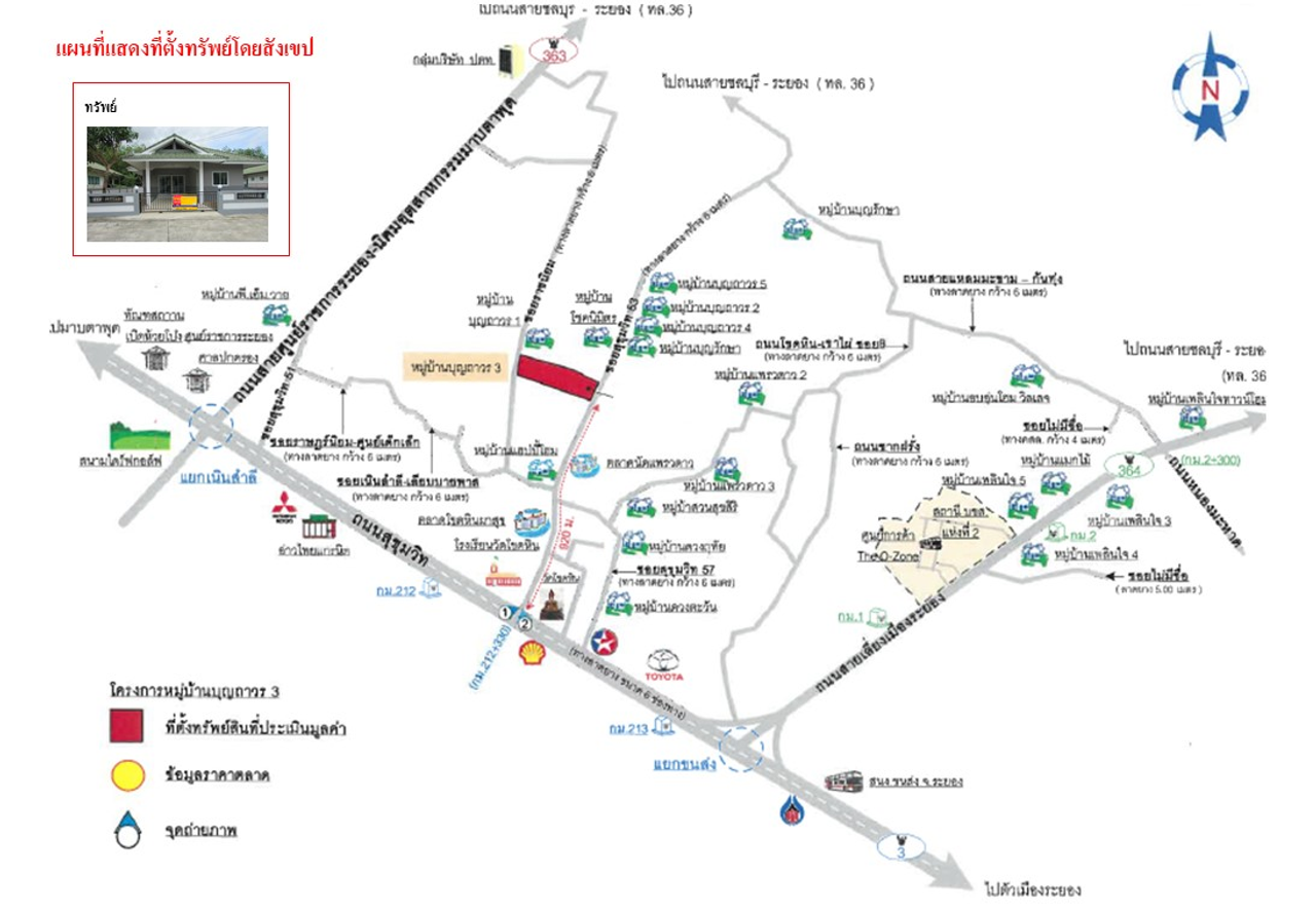 ที่ตั้ง : เลขที่ 11/31 หมู่บ้านบุญถาวร 3 จากถนนสุขุมวิท ทล.3 ฝั่งทางไปมาบตาพุด เลี้ยวขวาเข้าสู่ซอยสุขุมวิท 53 (โขดหิน-เขาไผ่) ตรงไปประมาณ 920 ม.แล้วเลี้ยวซ้ายเข้าสู่หมู่บ้านบุญถาวร 3 จากหน้าโครงการตรงไปแล้วเลี้ยวซ้าย และตรงไปบนถนนโครงการ ทรัพย์อยู่ทางซ้ายมือ
