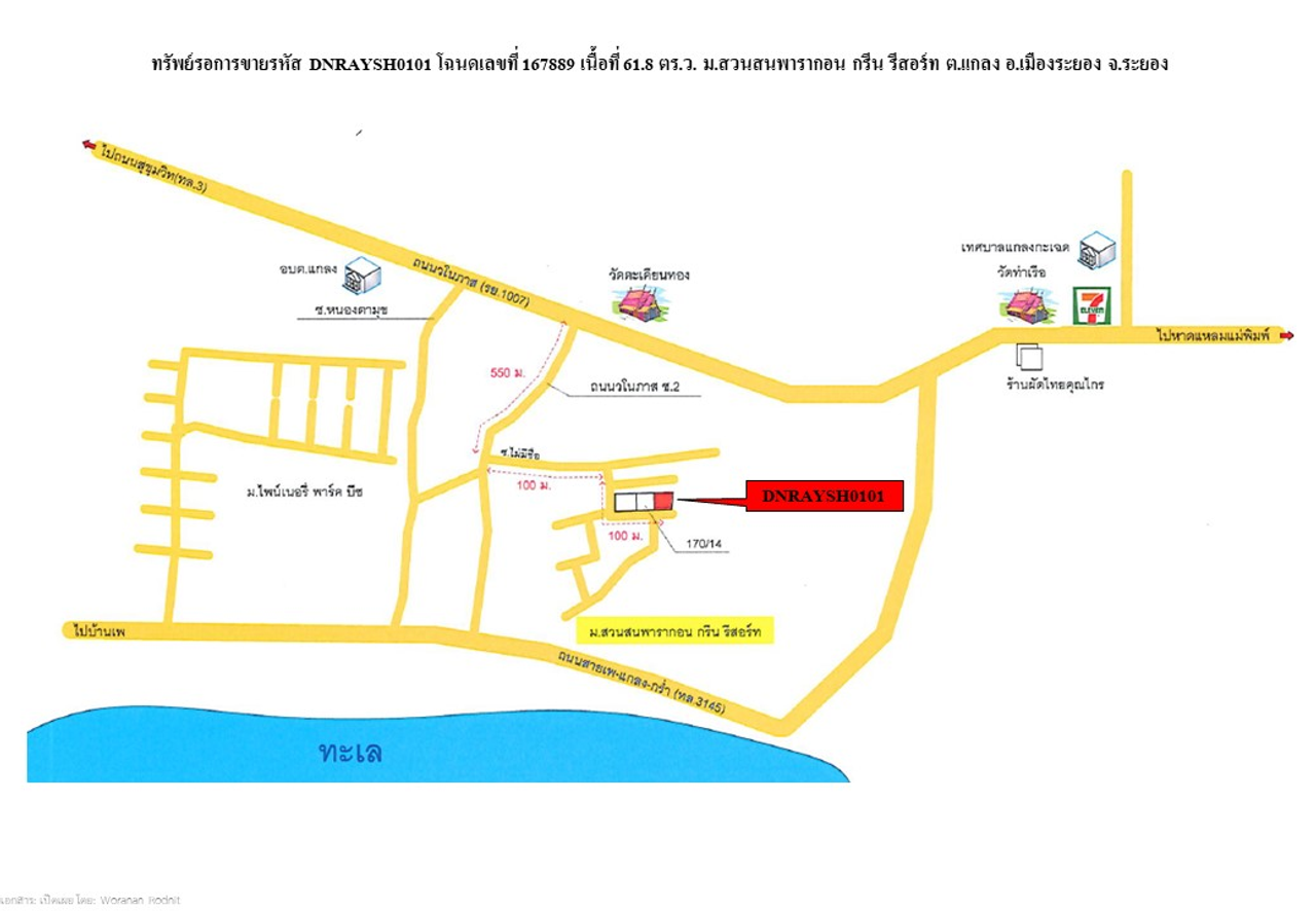 ที่ตั้ง : บ้านเลขที่ 170/15 ม.สวนสนพารากอน กรีน รีสอร์ท อยู่ห่างจากถนนวโนภาส (รย.1007) ประมาณ 750 เมตร