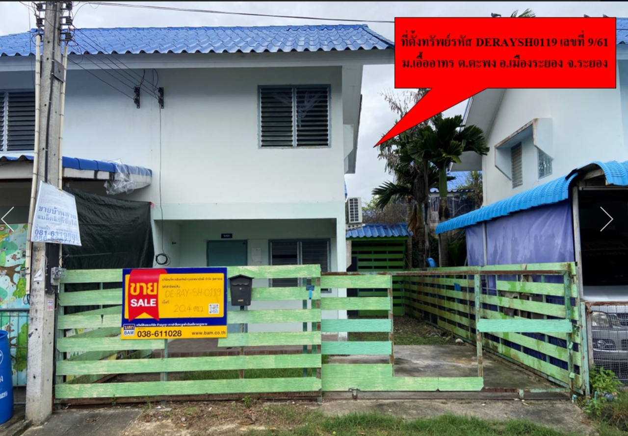 ขายบ้านระยอง บ้านแฝด 2 ชั้น ม.เอื้ออาทรตะพง เมืองระยอง NPA บสก